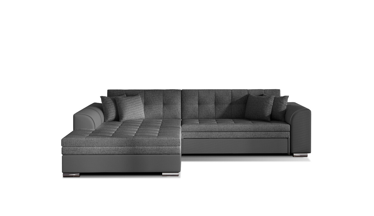 Coltar extensibil stanga 4 locuri, ELTAP, Sorento, 296x194x78 cm, lemn/poliester, gri inchis/gri