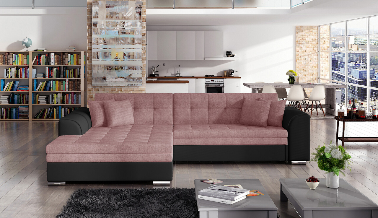 Coltar extensibil stanga 4 locuri, ELTAP, Sorento, 296x194x78 cm, lemn/poliester, roz/negru