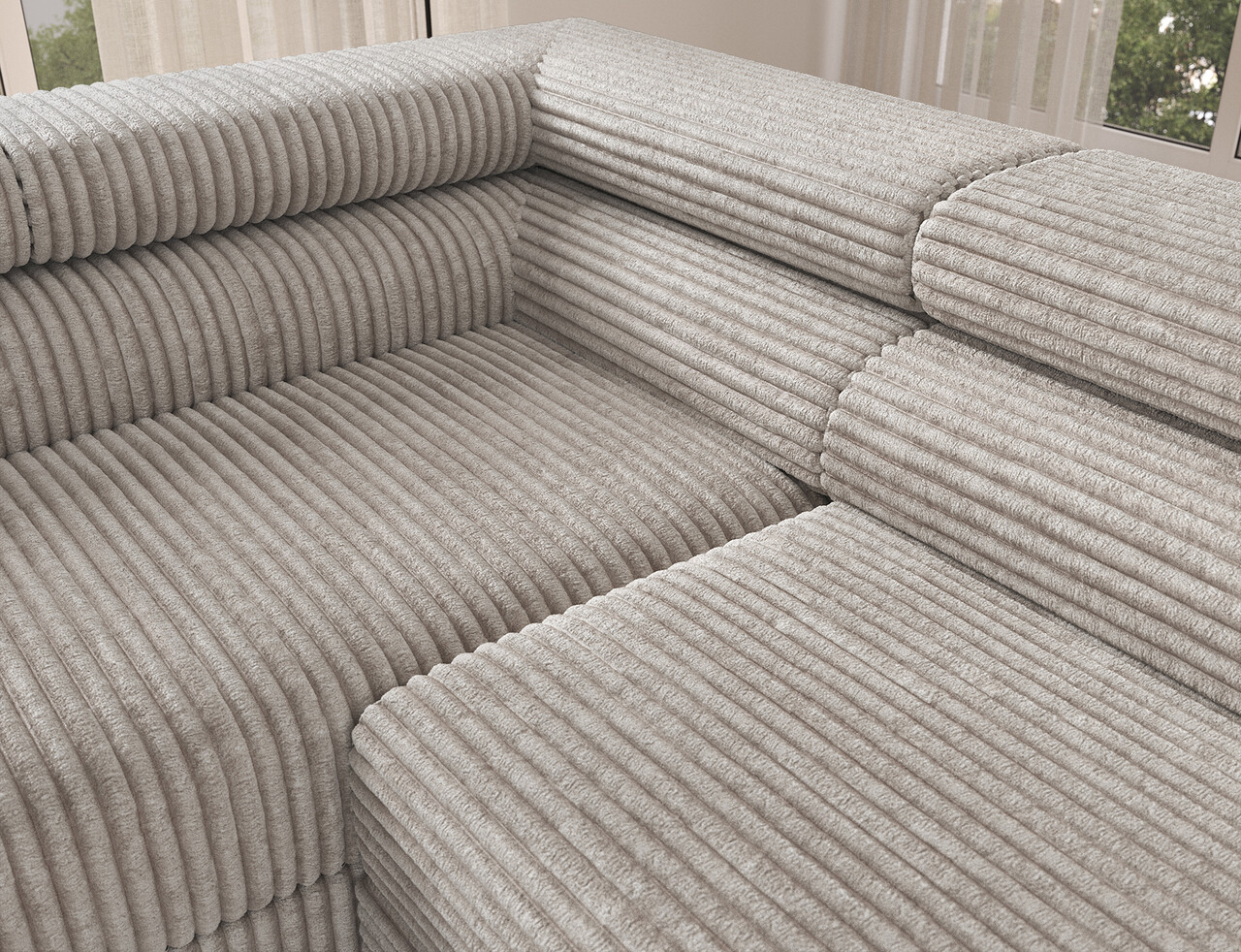 Coltar extensibil stanga 5 locuri ELTAP, Colesio, 274x200x93 cm, lemn/poliester, alb murdar