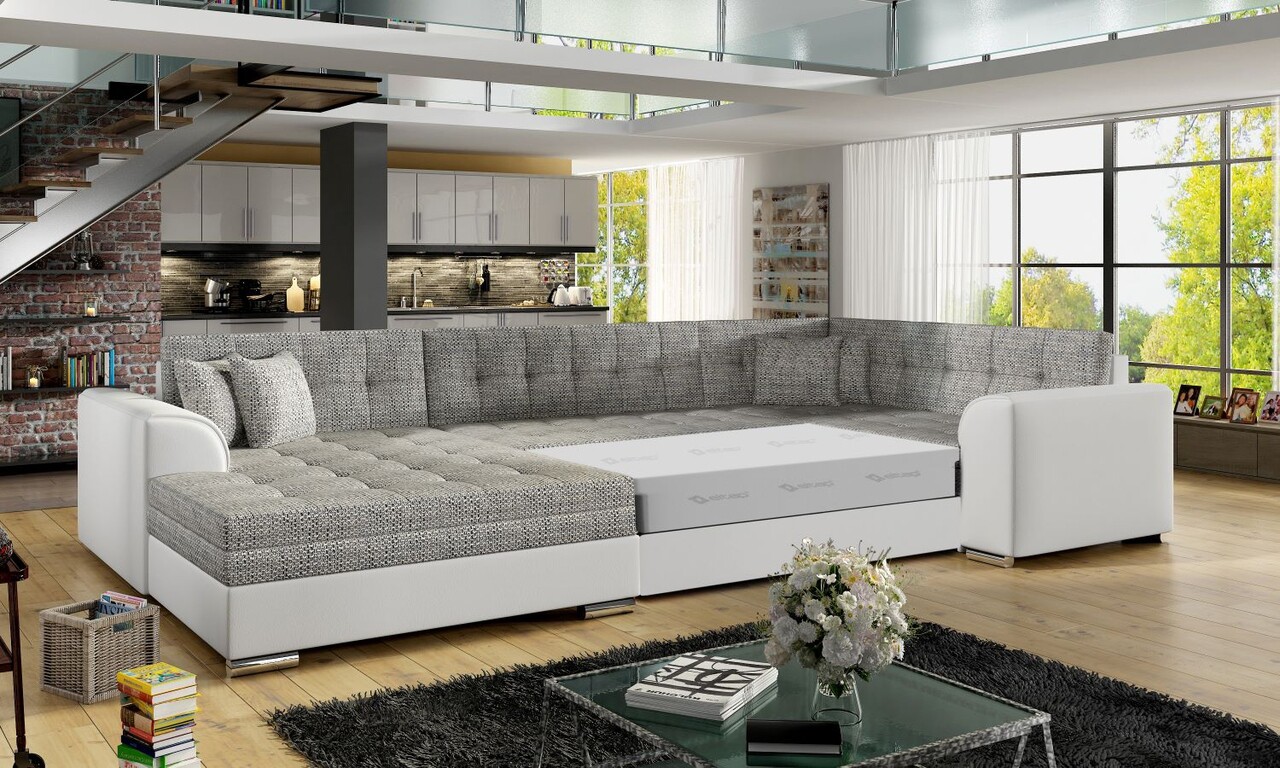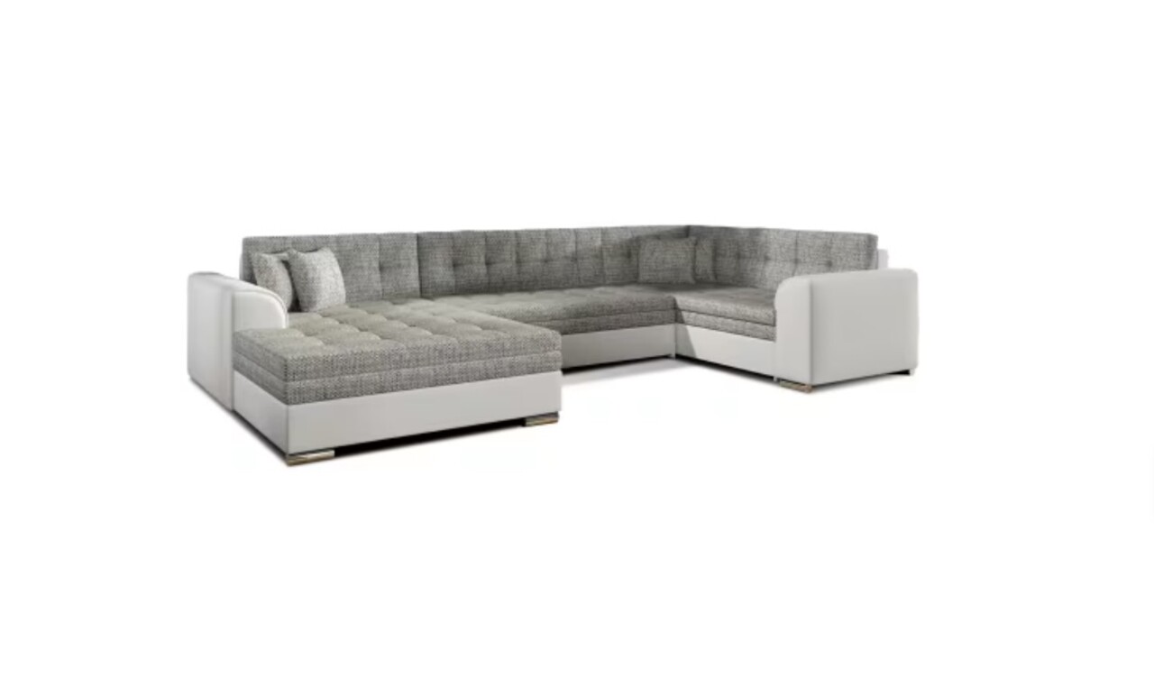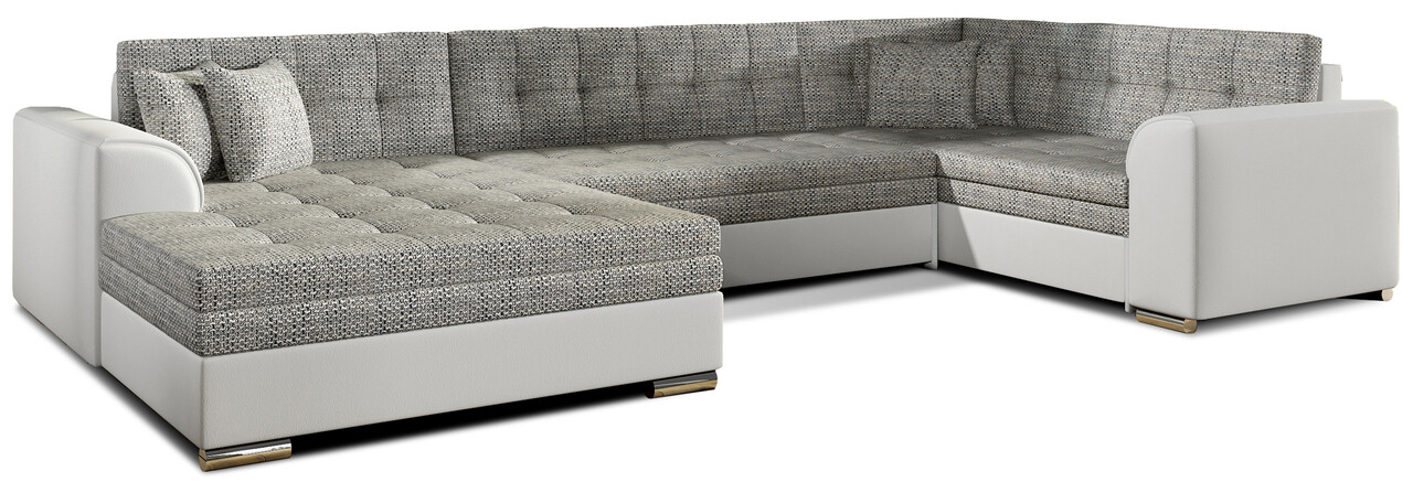 Coltar extensibil stanga 5 locuri ELTAP, Damario, 338x189x78 cm, lemn/poliester, gri/alb