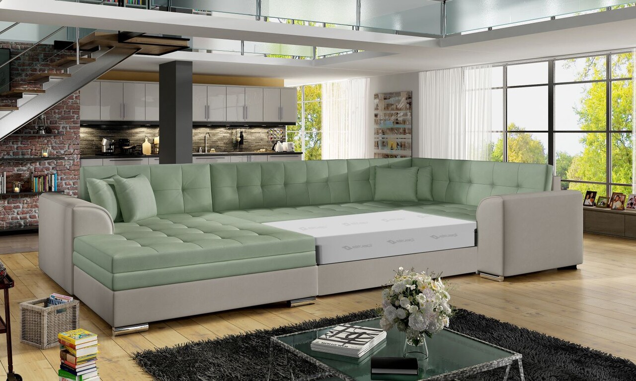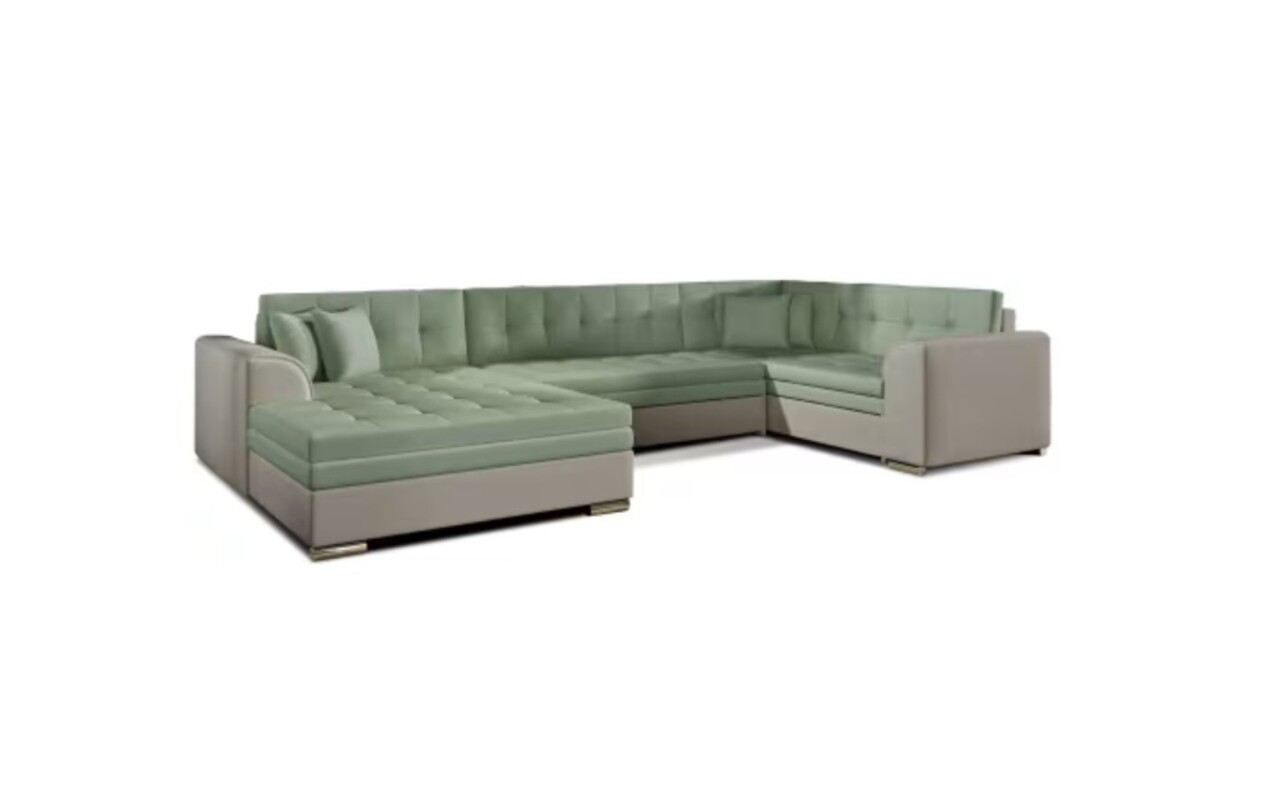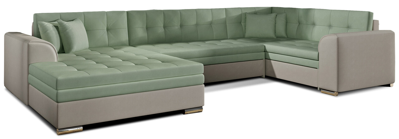 Coltar extensibil stanga 5 locuri ELTAP, Damario, 338x189x78 cm, lemn/poliester, verde menta/gri