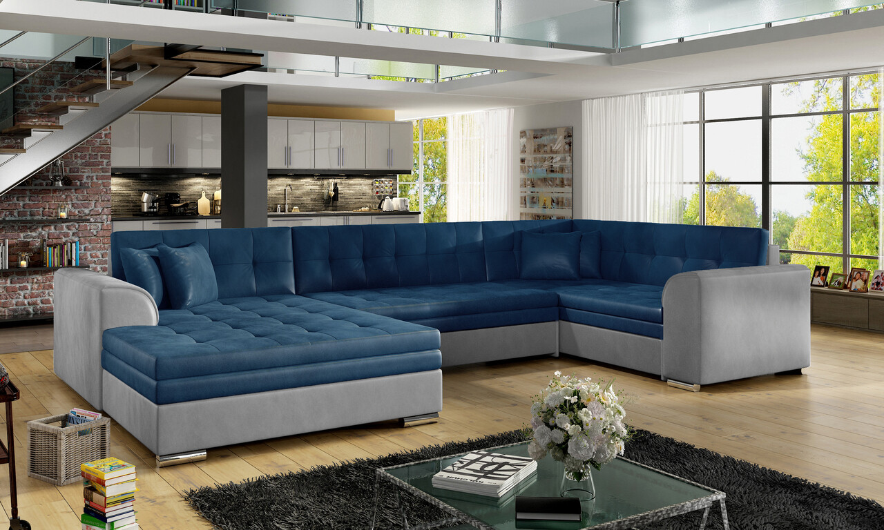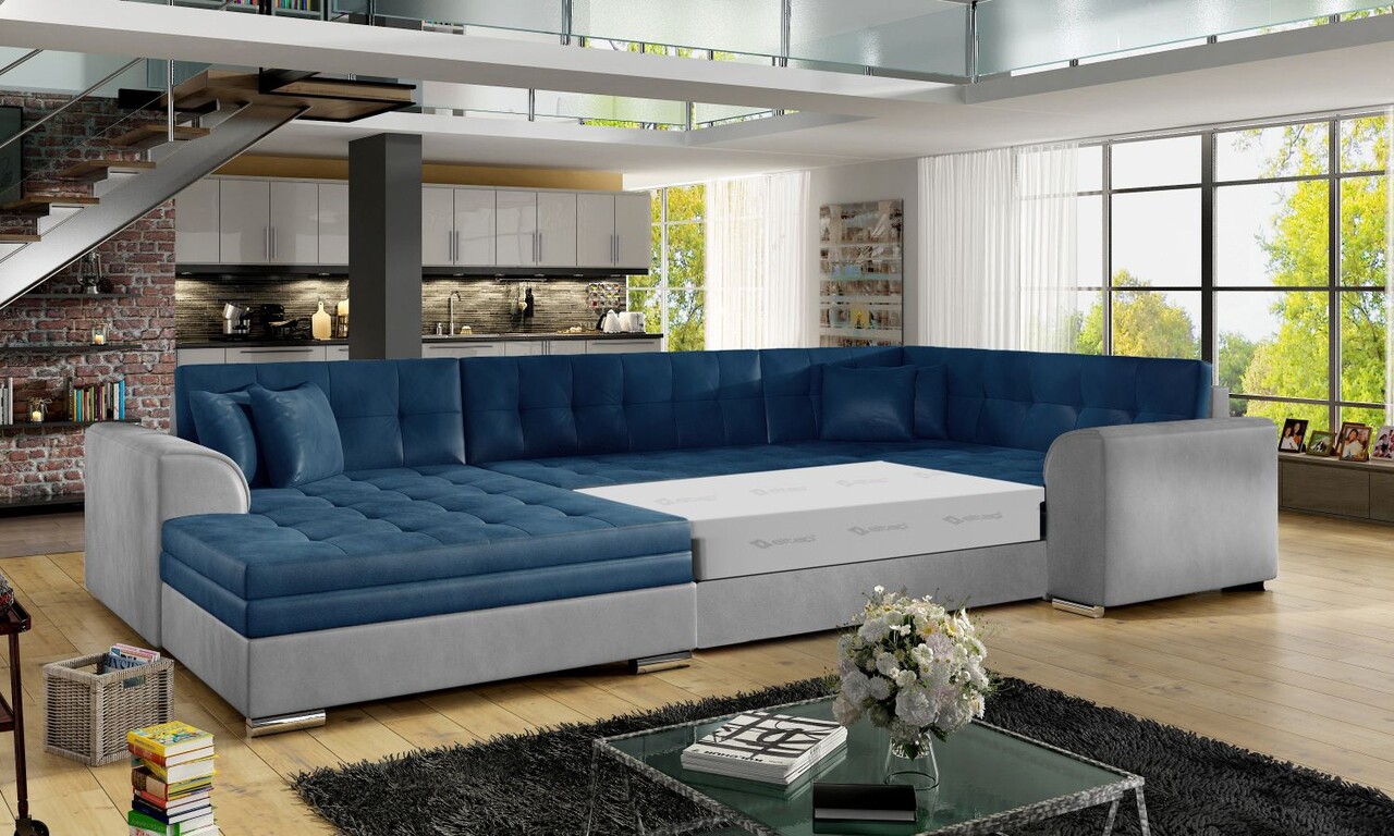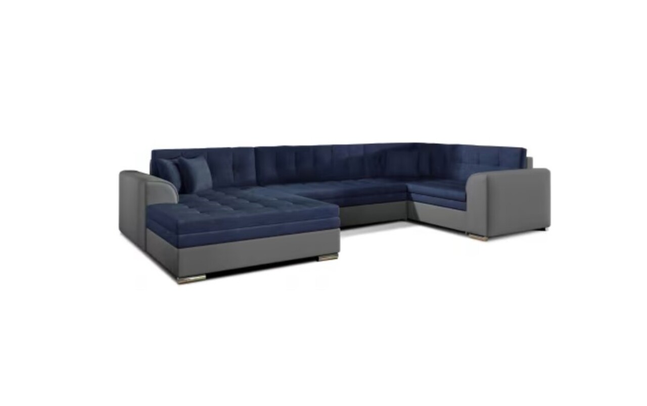 Coltar extensibil stanga 5 locuri ELTAP, Damario, 338x189x78 cm, lemn/poliester, albastru inchis/gri inchis
