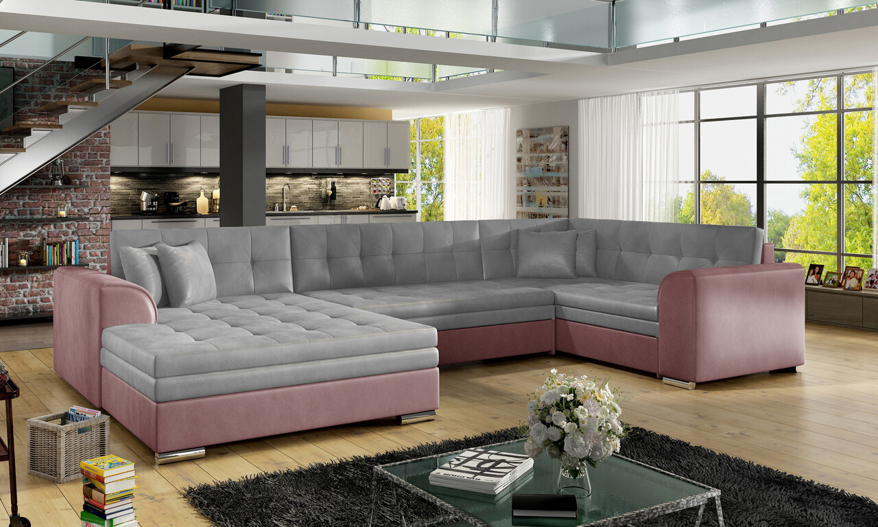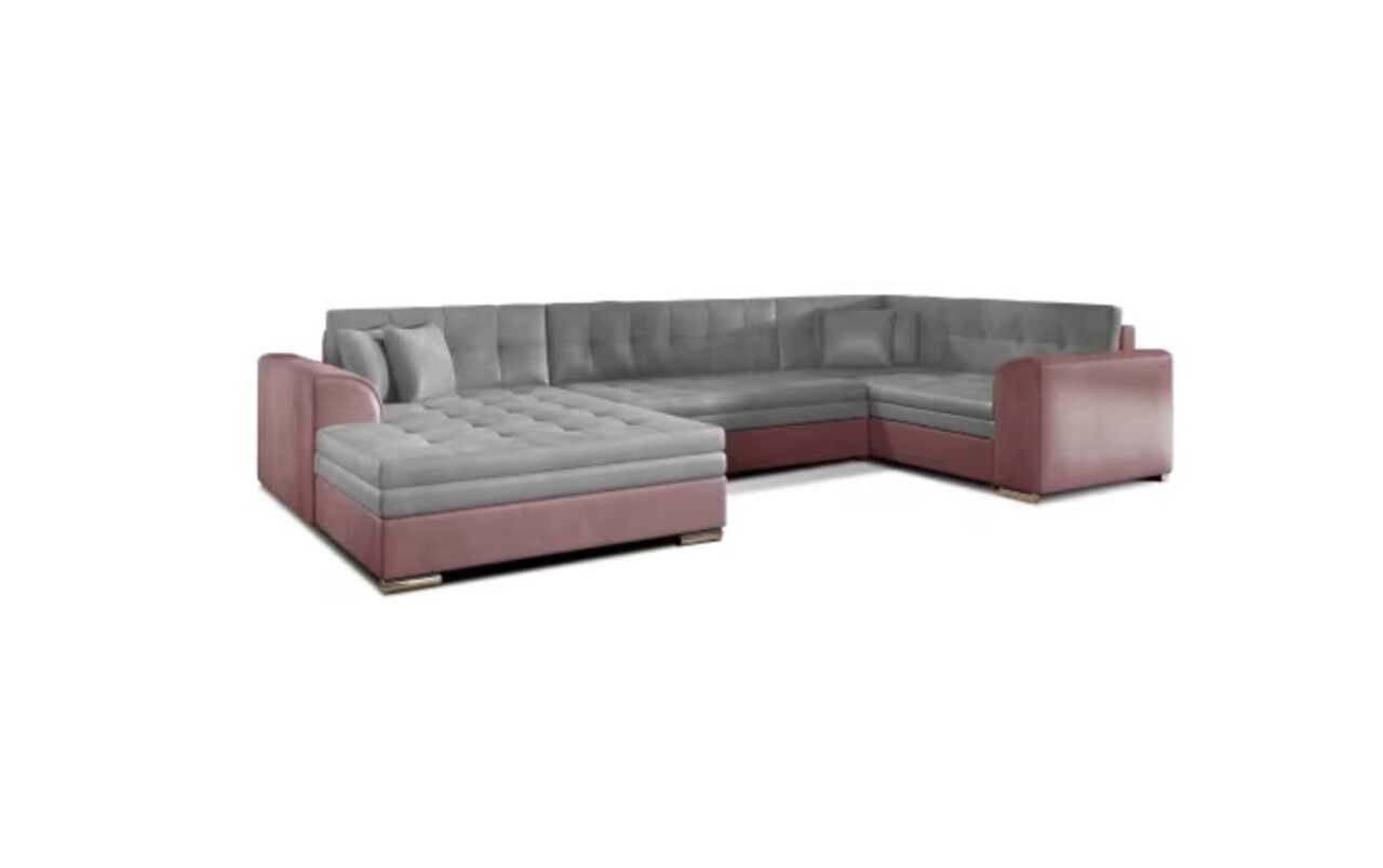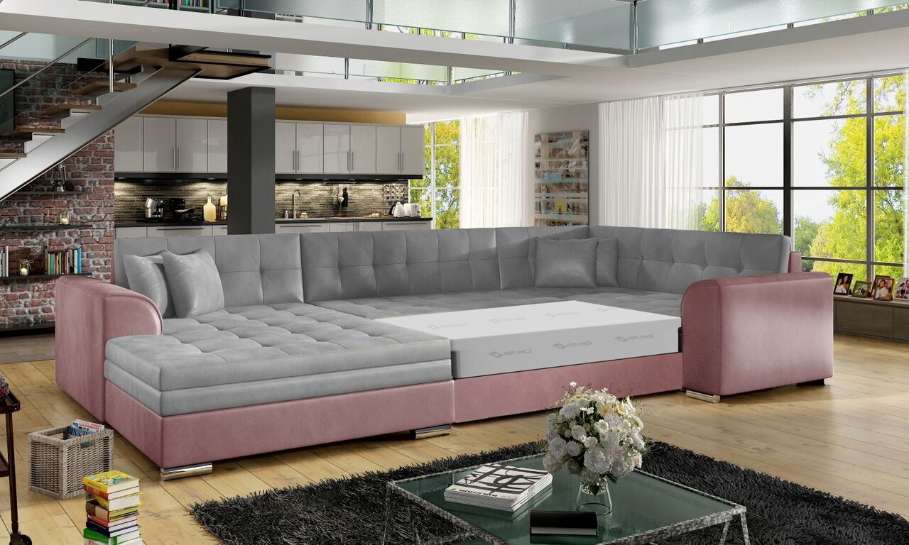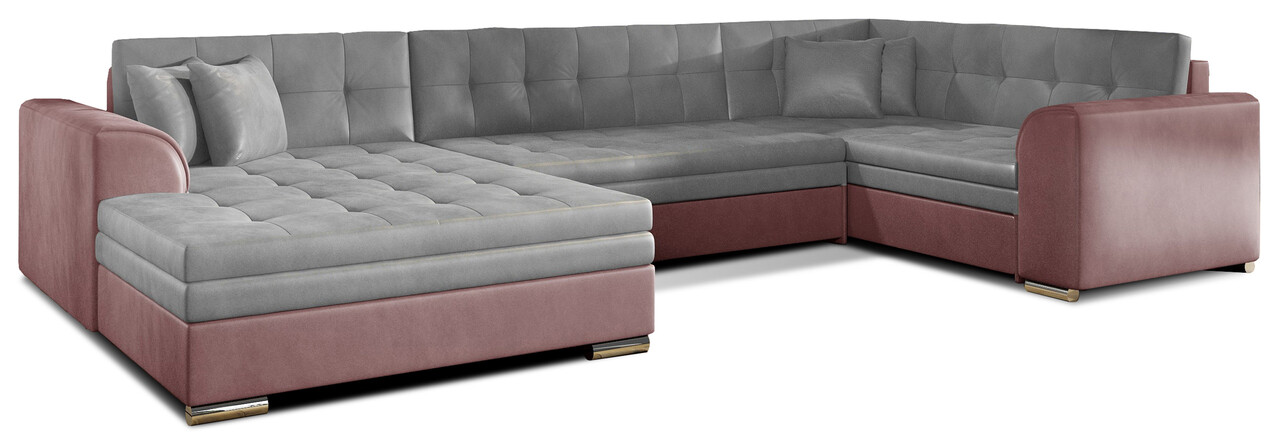 Coltar extensibil stanga 5 locuri ELTAP, Damario, 338x189x78 cm, lemn/poliester, gri/roz