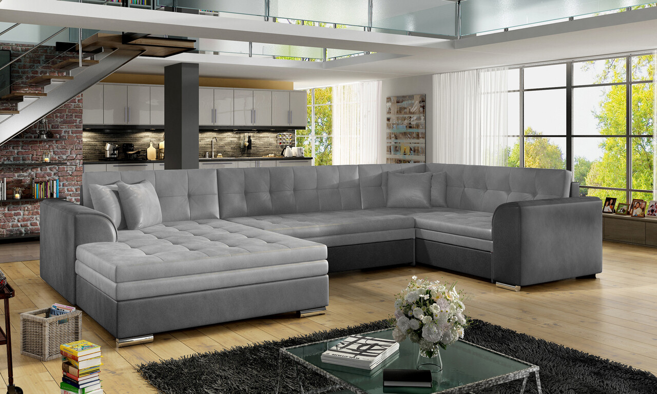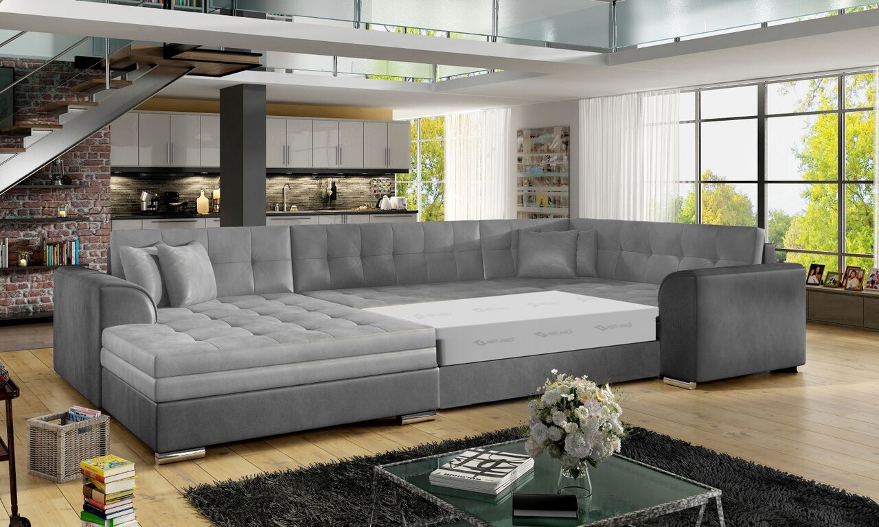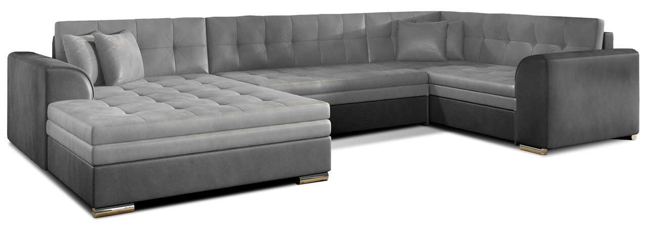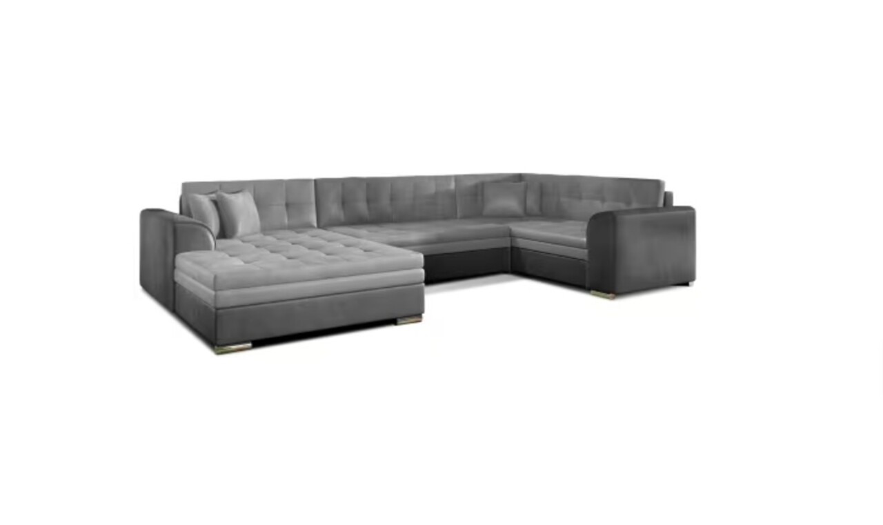 Coltar extensibil stanga 5 locuri ELTAP, Damario, 338x189x78 cm, lemn/poliester, gri deschis/gri inchis