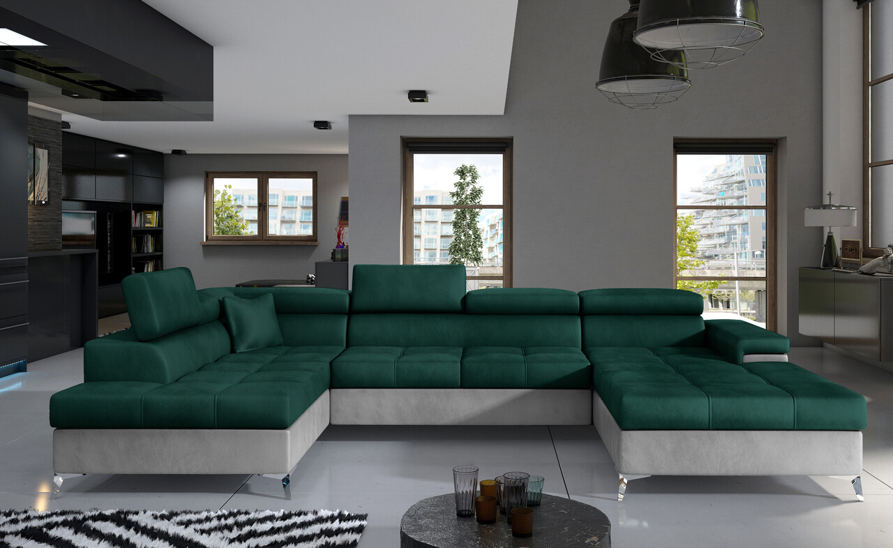 Coltar extensibil stanga 5 locuri ELTAP, Edr-10, Eduardo, 337x205x88 cm, lemn/poliester, verde inchis/gri