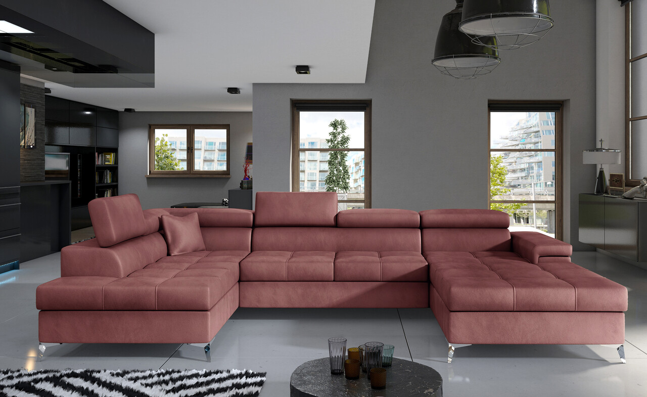 Coltar extensibil stanga 5 locuri ELTAP, Edr-13, Eduardo, 337x205x88 cm, lemn/poliester, roz inchis