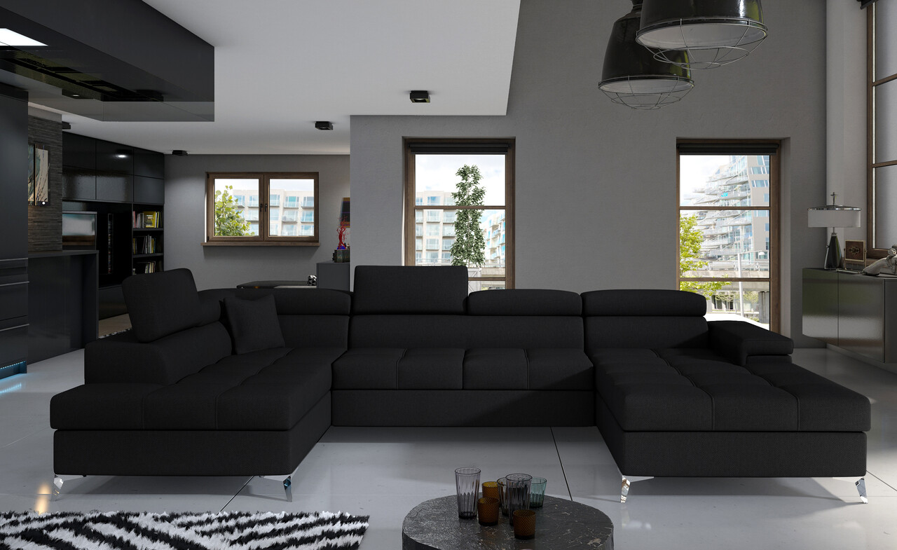 Coltar extensibil stanga 5 locuri ELTAP, Edr-24, Eduardo, 337x205x88 cm, lemn/poliester, negru