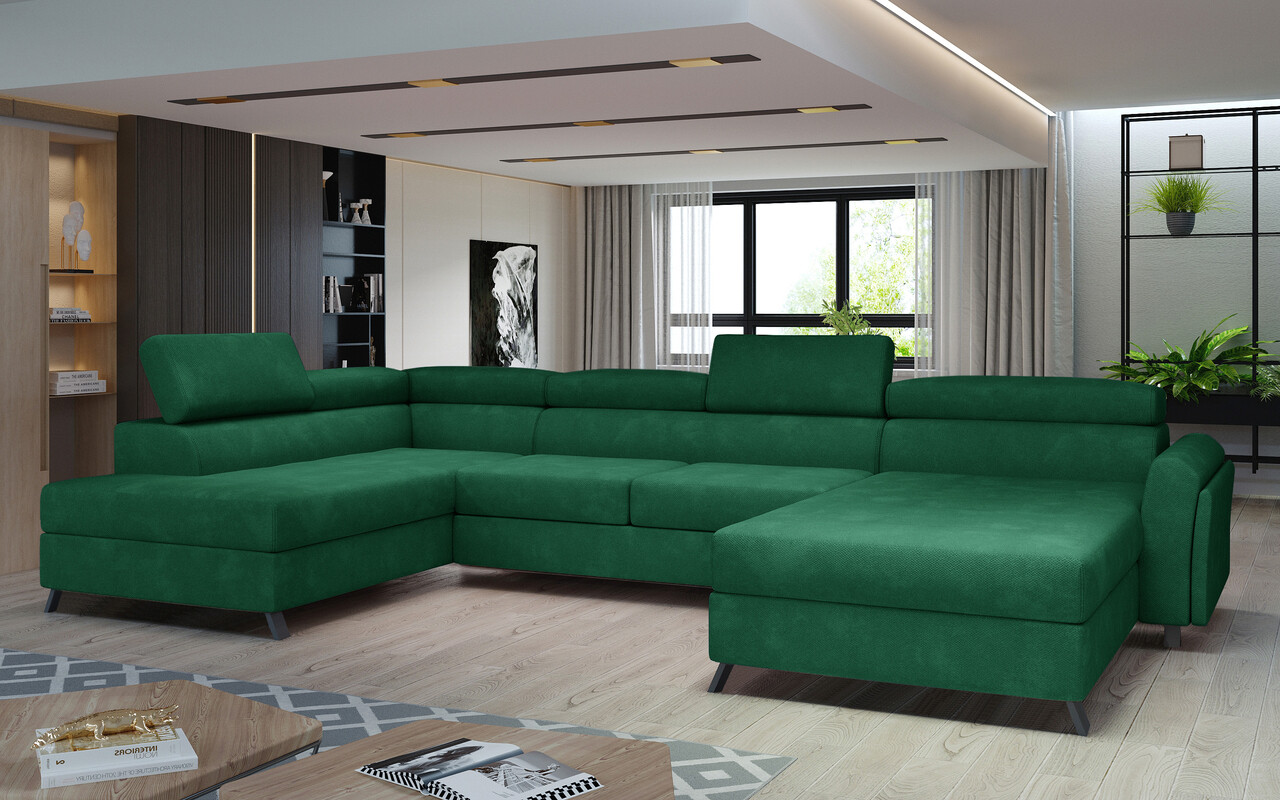 Coltar extensibil stanga 5 locuri ELTAP, Jos-05, Josette, 370x190x98 cm, lemn/poliester, verde inchis