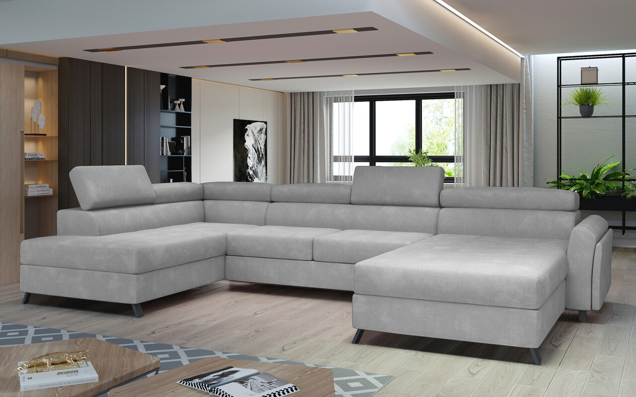 Coltar extensibil stanga 5 locuri ELTAP, Jos-07, Josette, 370x190x98 cm, lemn/poliester, gri deschis