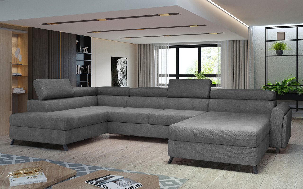 Coltar extensibil stanga 5 locuri ELTAP, Jos-08, Josette, 370x190x98 cm, lemn/poliester, gri inchis