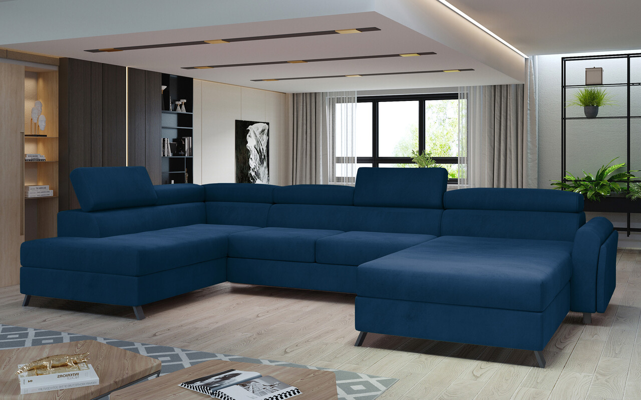 Coltar extensibil stanga 5 locuri ELTAP, Jos-15, Josette, 370x190x98 cm, lemn/poliester, albastru inchis
