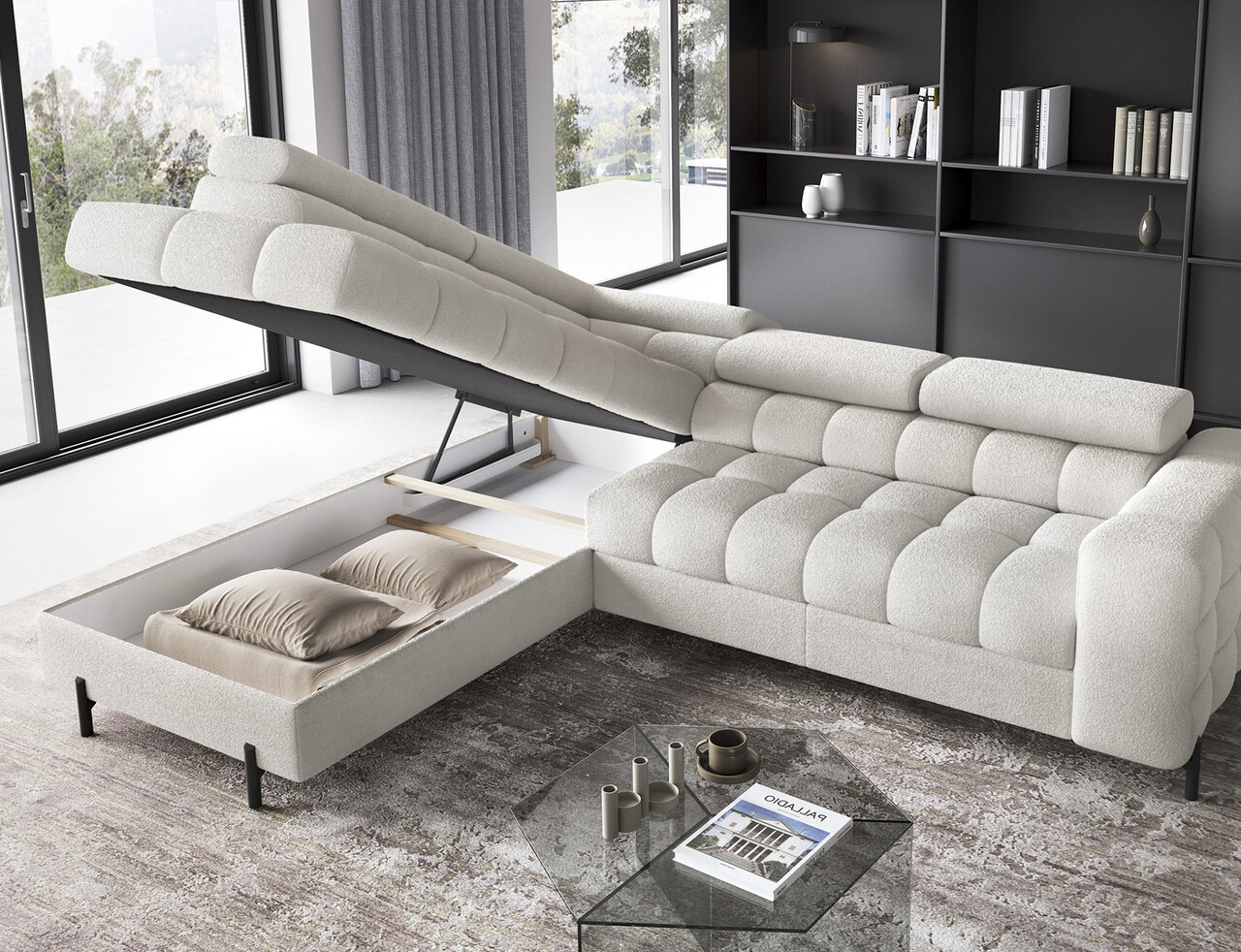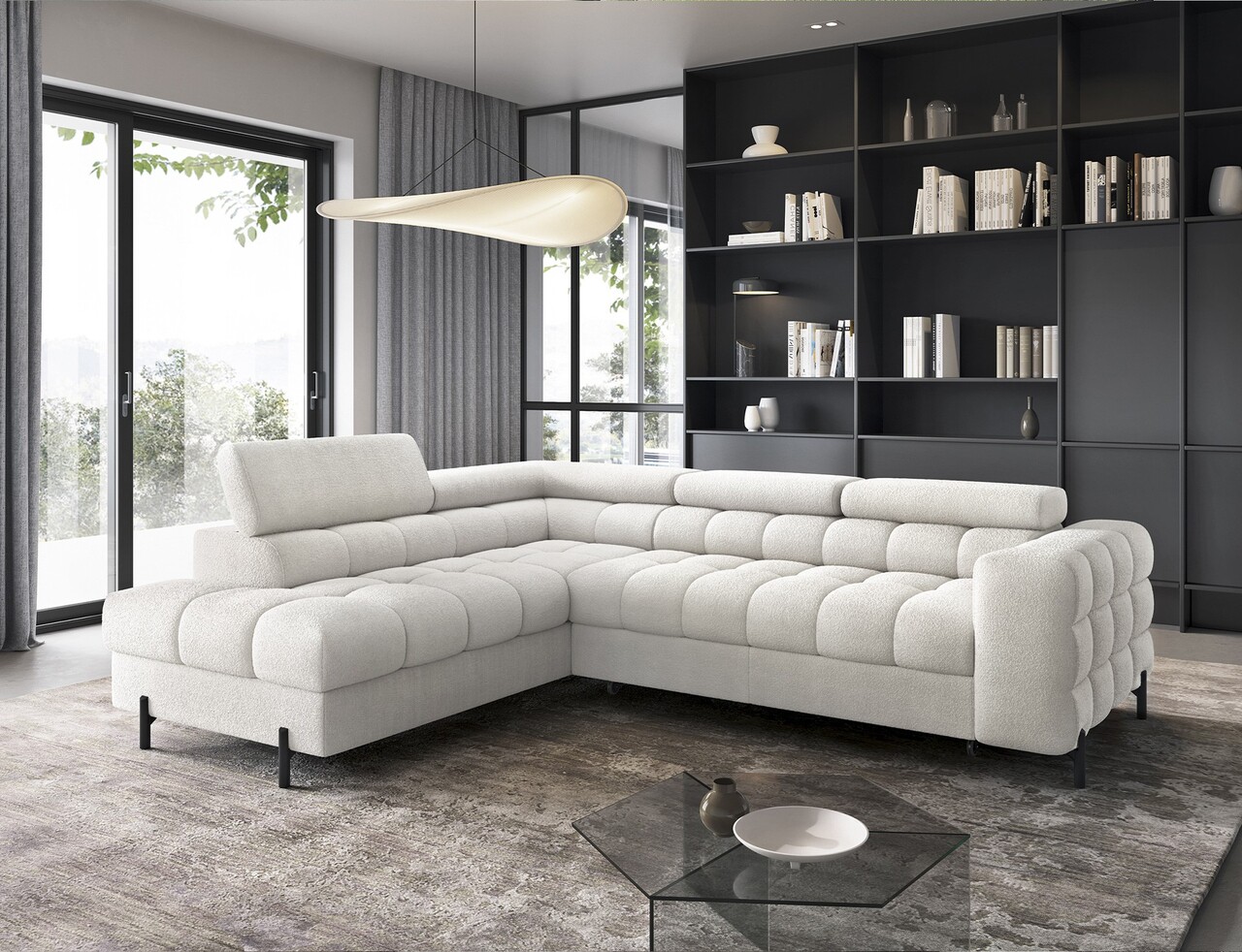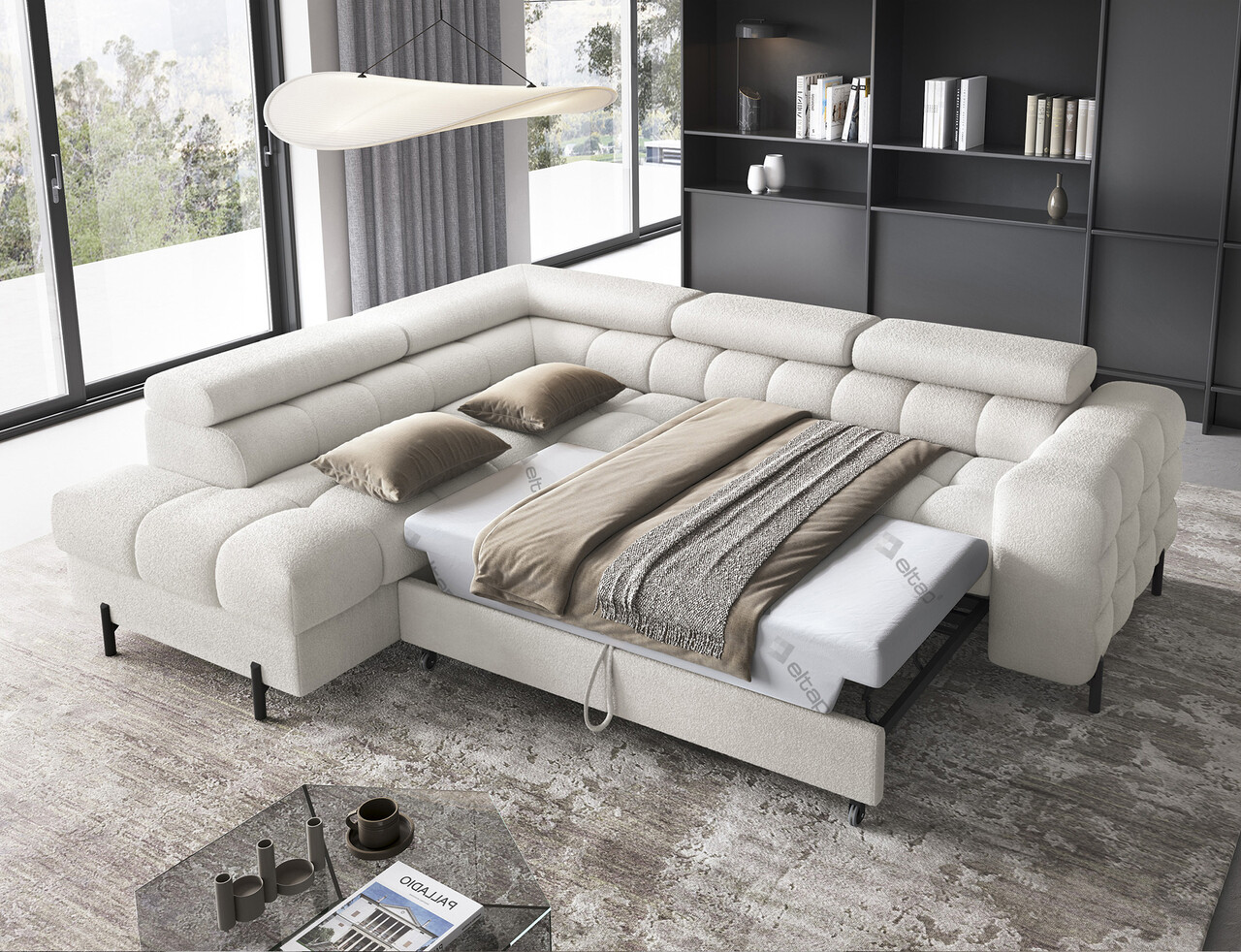 Coltar extensibil stanga 5 locuri ELTAP, LT-01AMO, Ferucce, 276x200x93 cm, lemn/poliester, alb