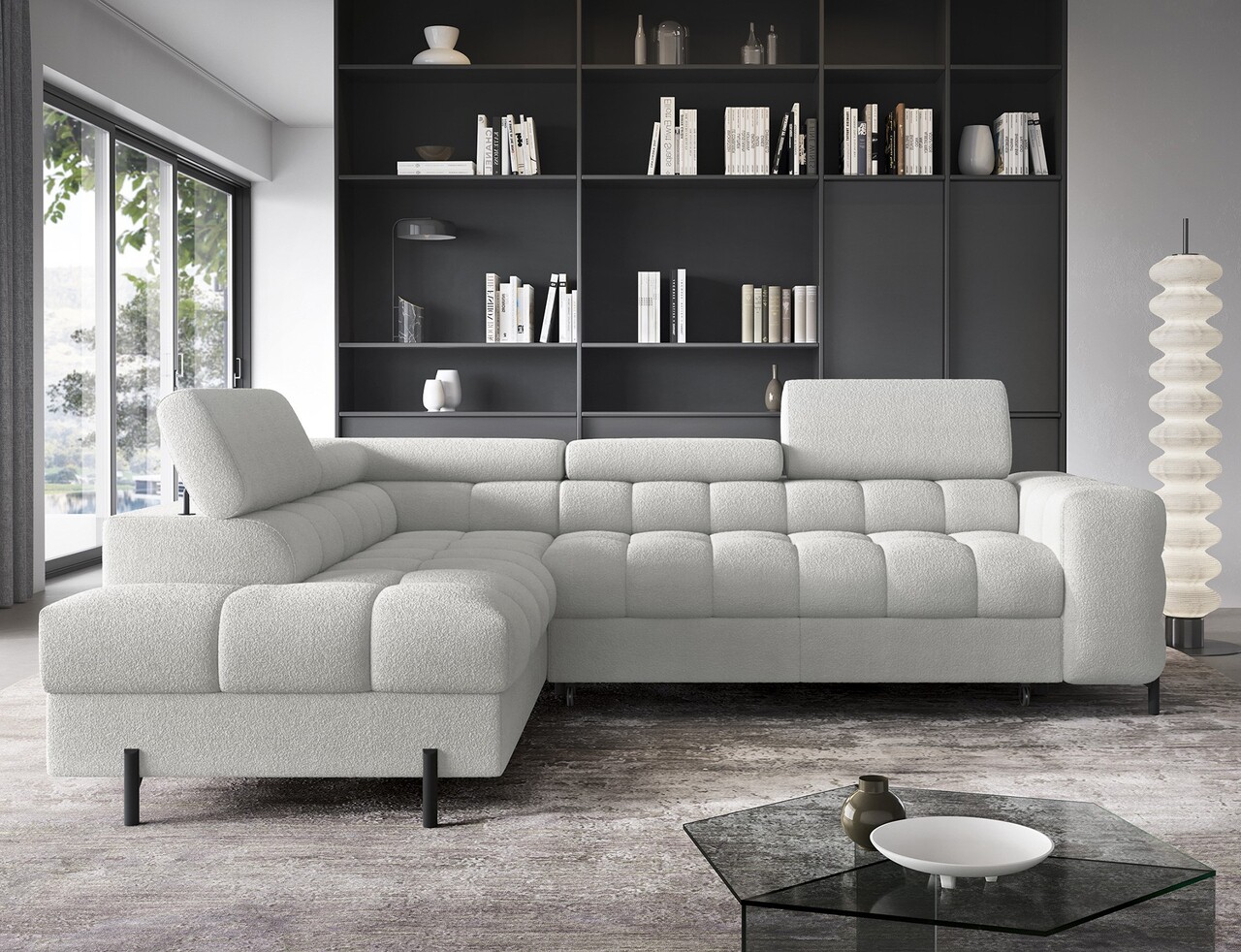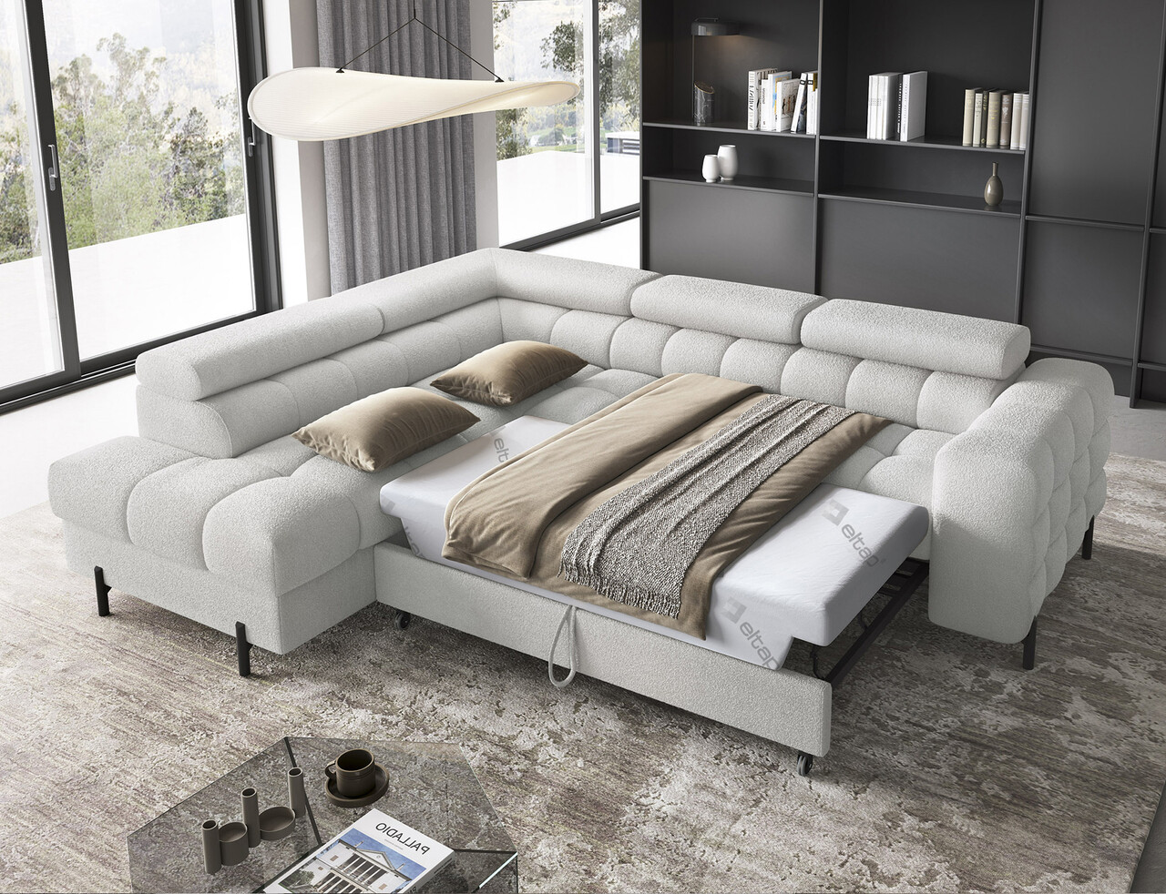 Coltar extensibil stanga 5 locuri ELTAP, LT-03ROY, Ferucce, 276x200x93 cm, lemn/poliester, gri deschis