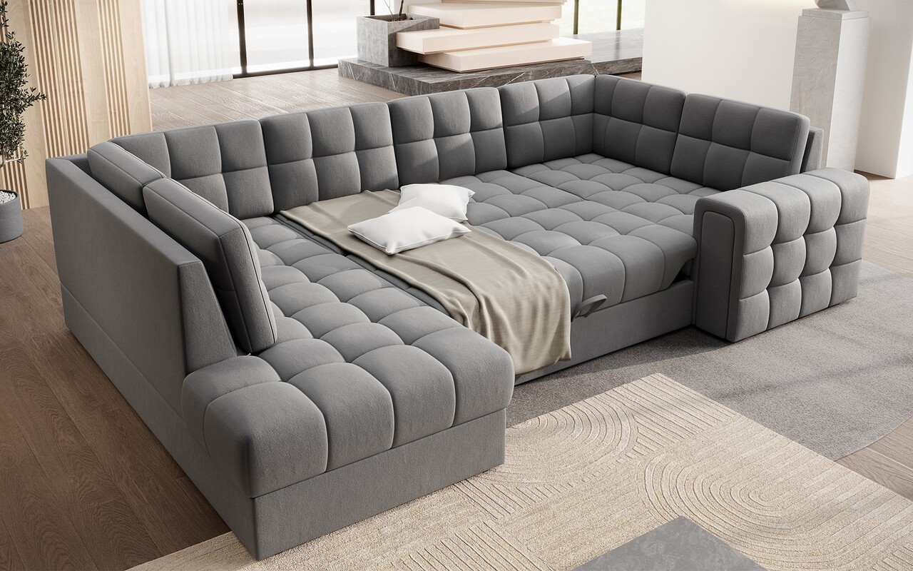 Coltar extensibil stanga 5 locuri ELTAP, LT-04SO, Blewett, 299x198x82 cm, lemn/poliester, gri