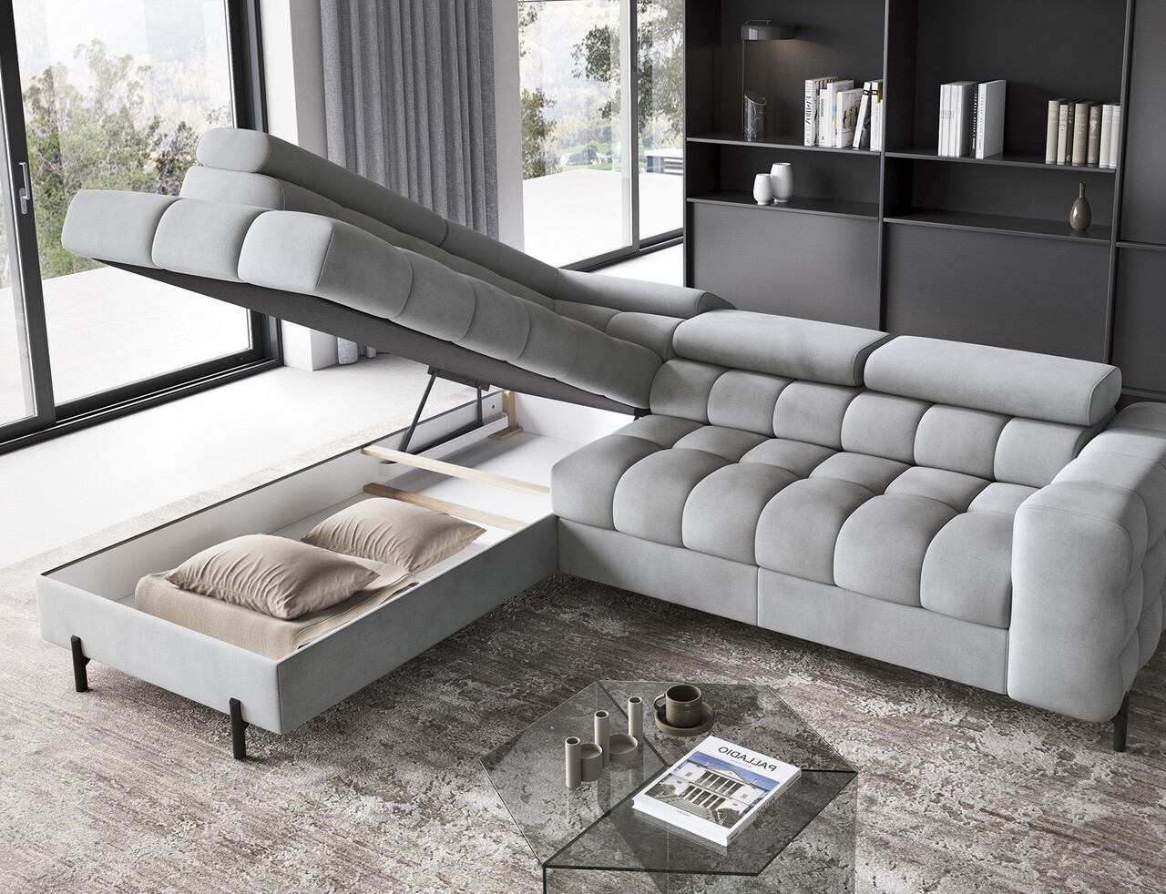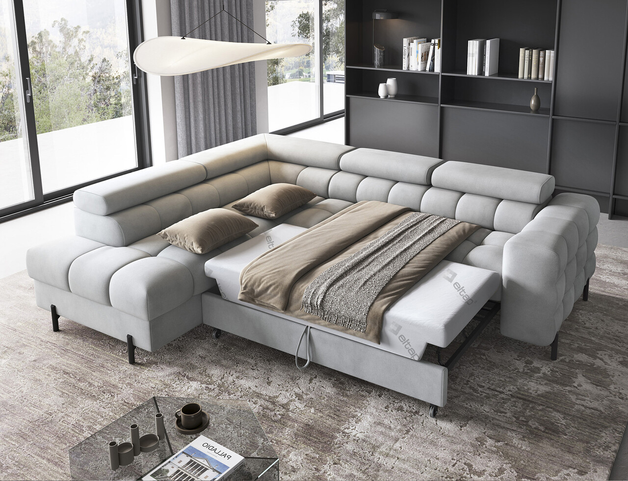 Coltar extensibil stanga 5 locuri ELTAP, LT-05PA, Ferucce, 276x200x93 cm, lemn/poliester, gri deschis