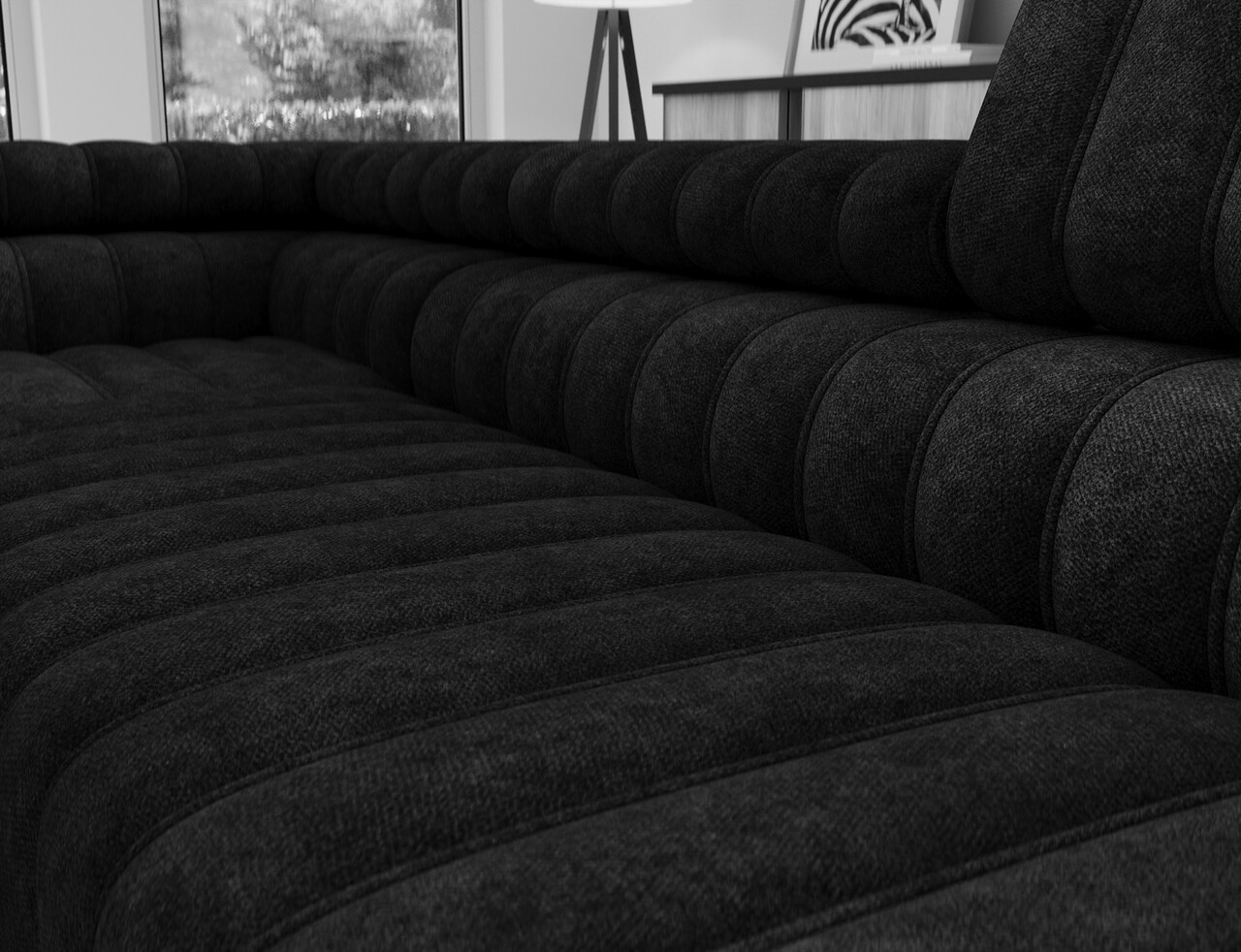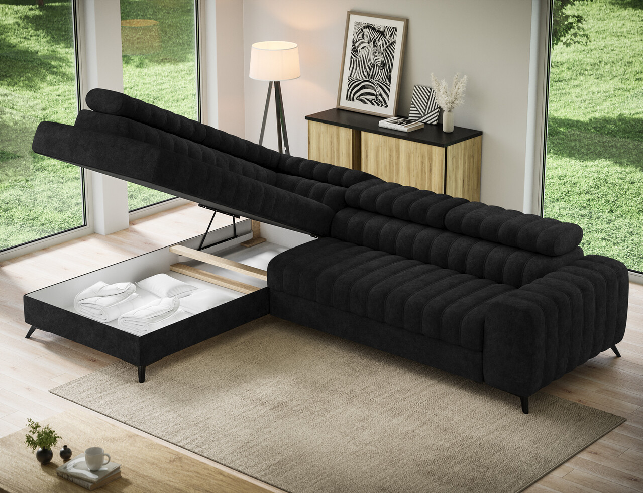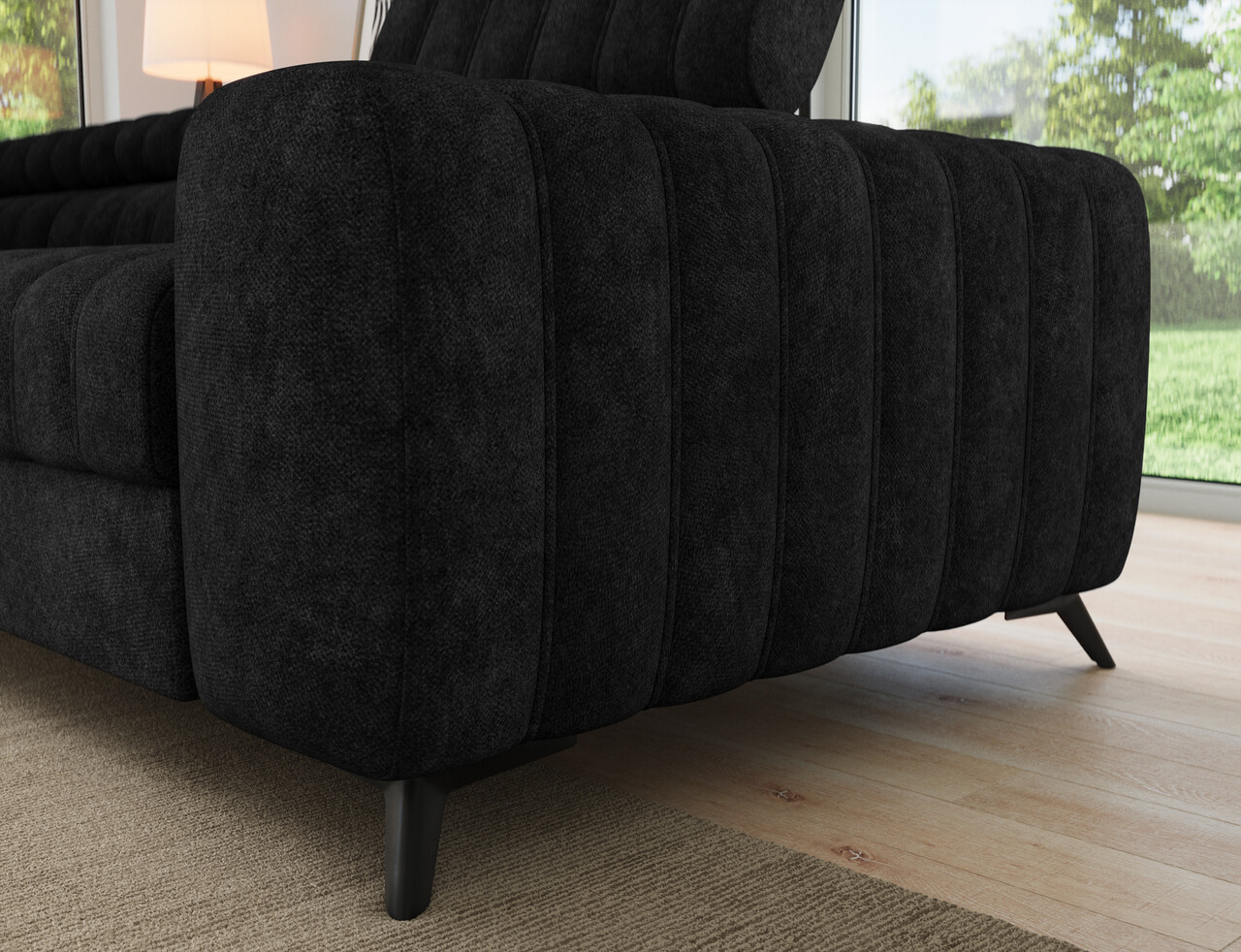 Coltar extensibil stanga 5 locuri ELTAP, LT-06AU, Kanedo, 269x204x86 cm, lemn/poliester, negru
