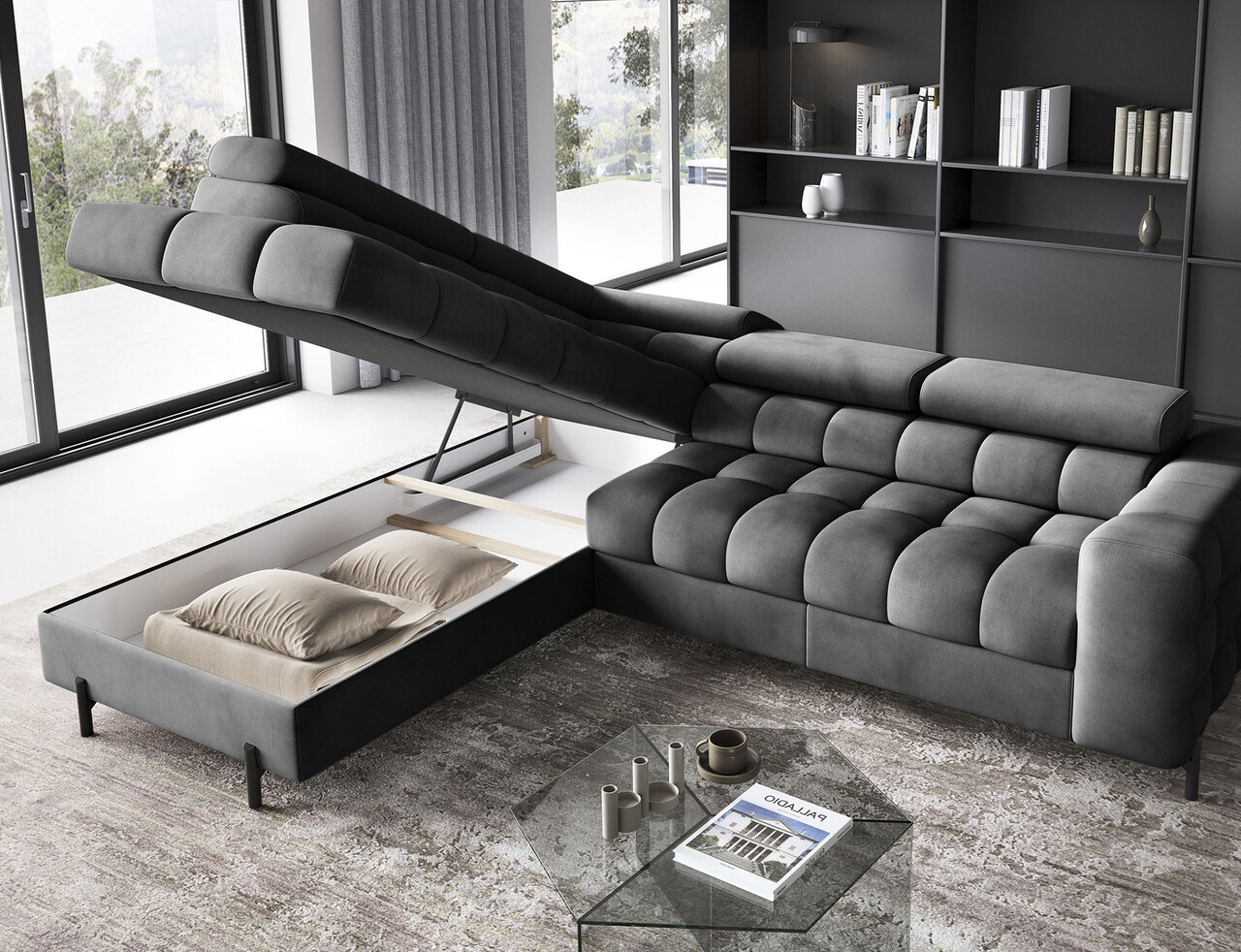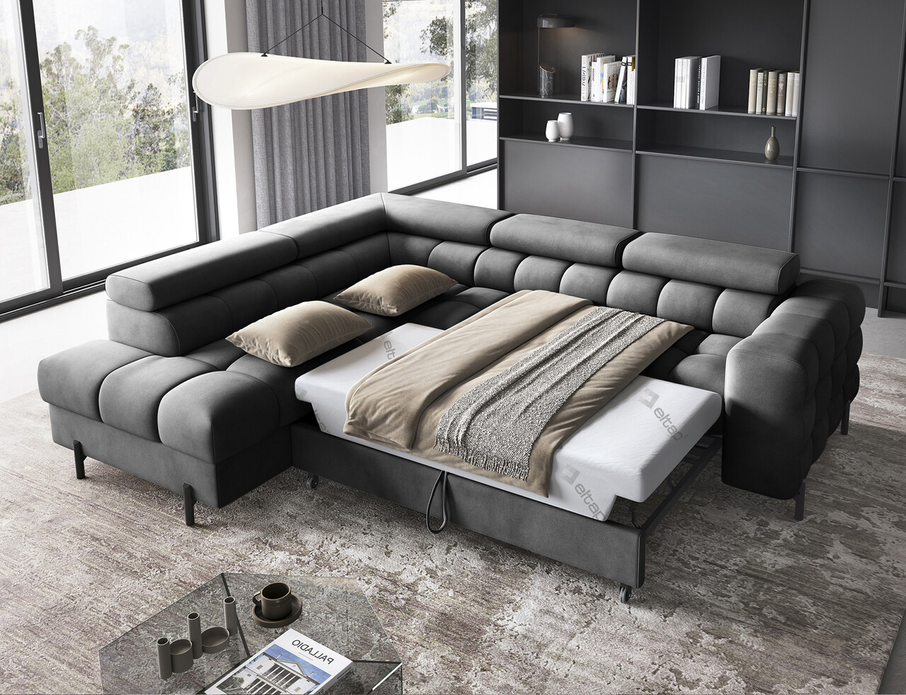 Coltar extensibil stanga 5 locuri ELTAP, LT-06PA, Ferucce, 276x200x93 cm, lemn/poliester, gri inchis