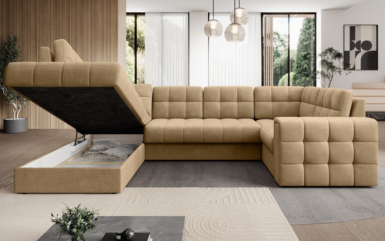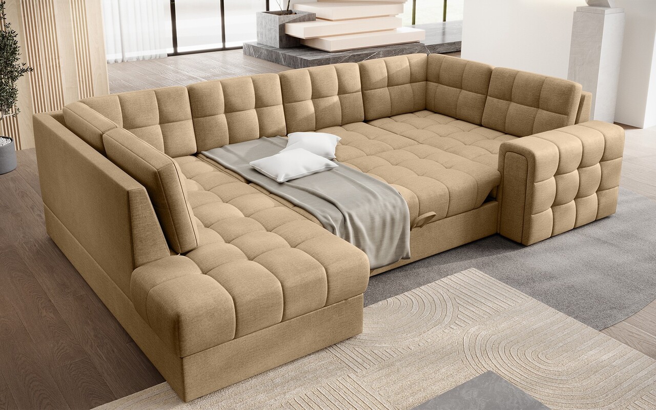 Coltar extensibil stanga 5 locuri ELTAP, LT-09MO, Blewett, 299x198x82 cm, lemn/poliester, maro deschis