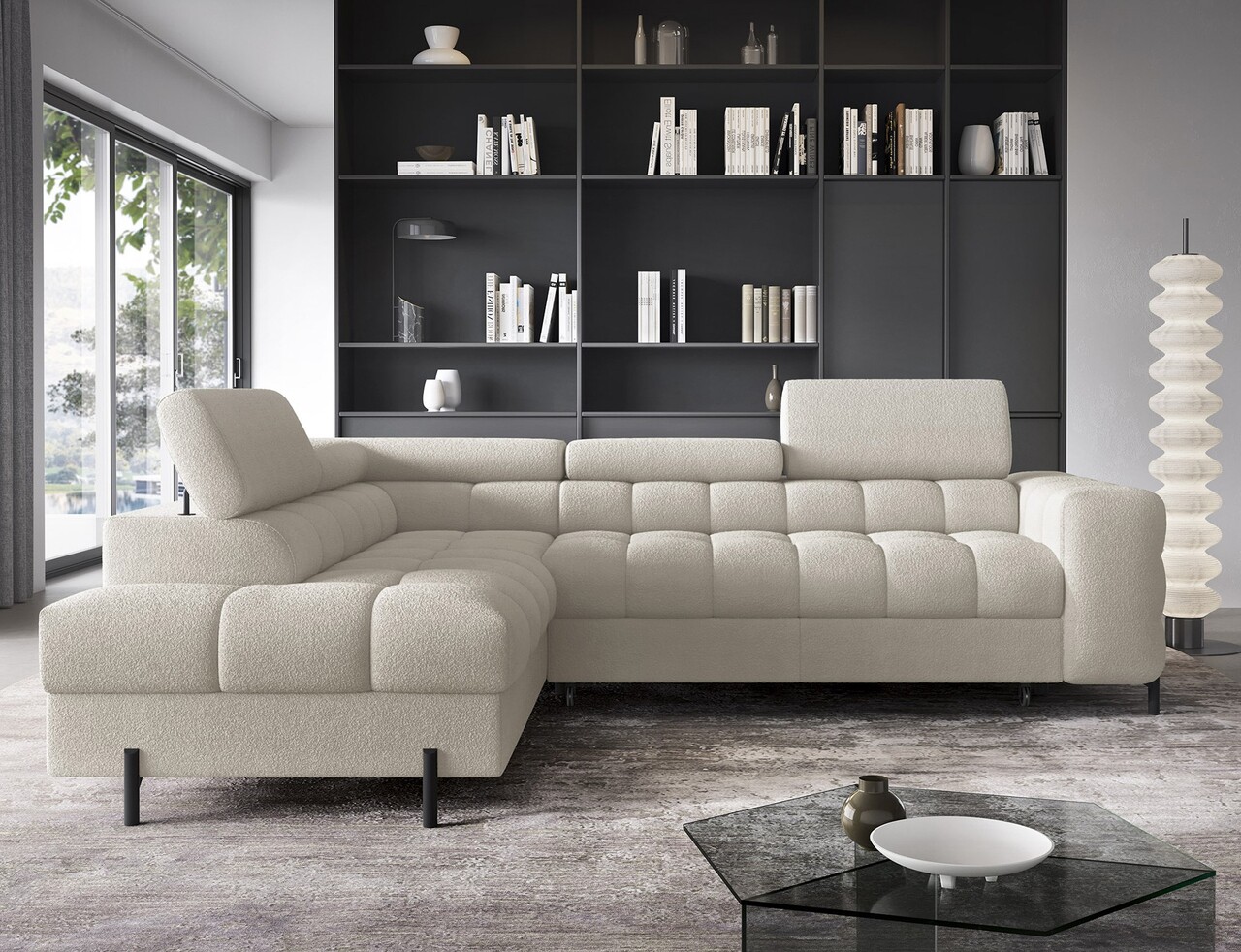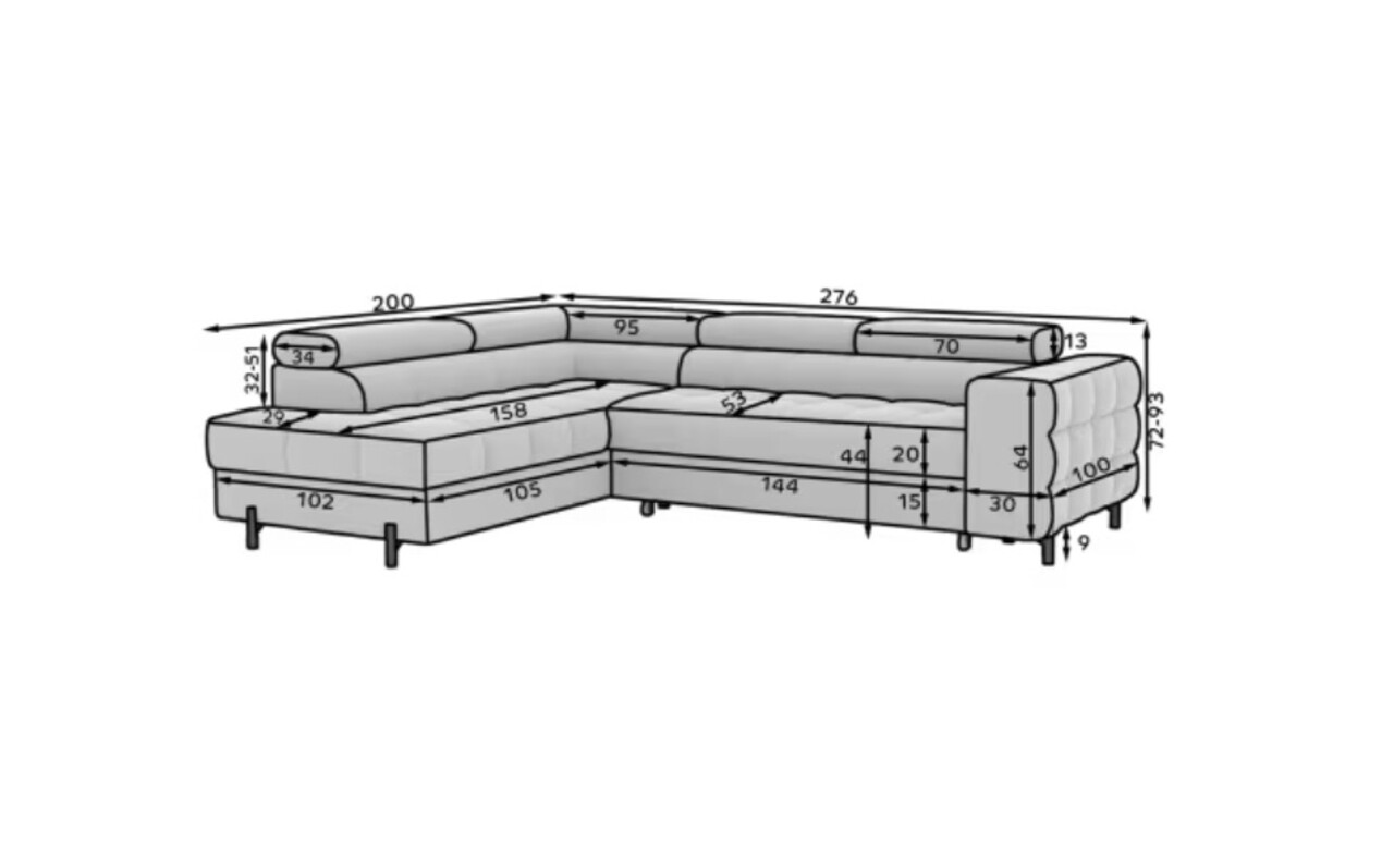 Coltar extensibil stanga 5 locuri ELTAP, LT-18ROY, Ferucce, 276x200x93 cm, lemn/poliester, bej deschis