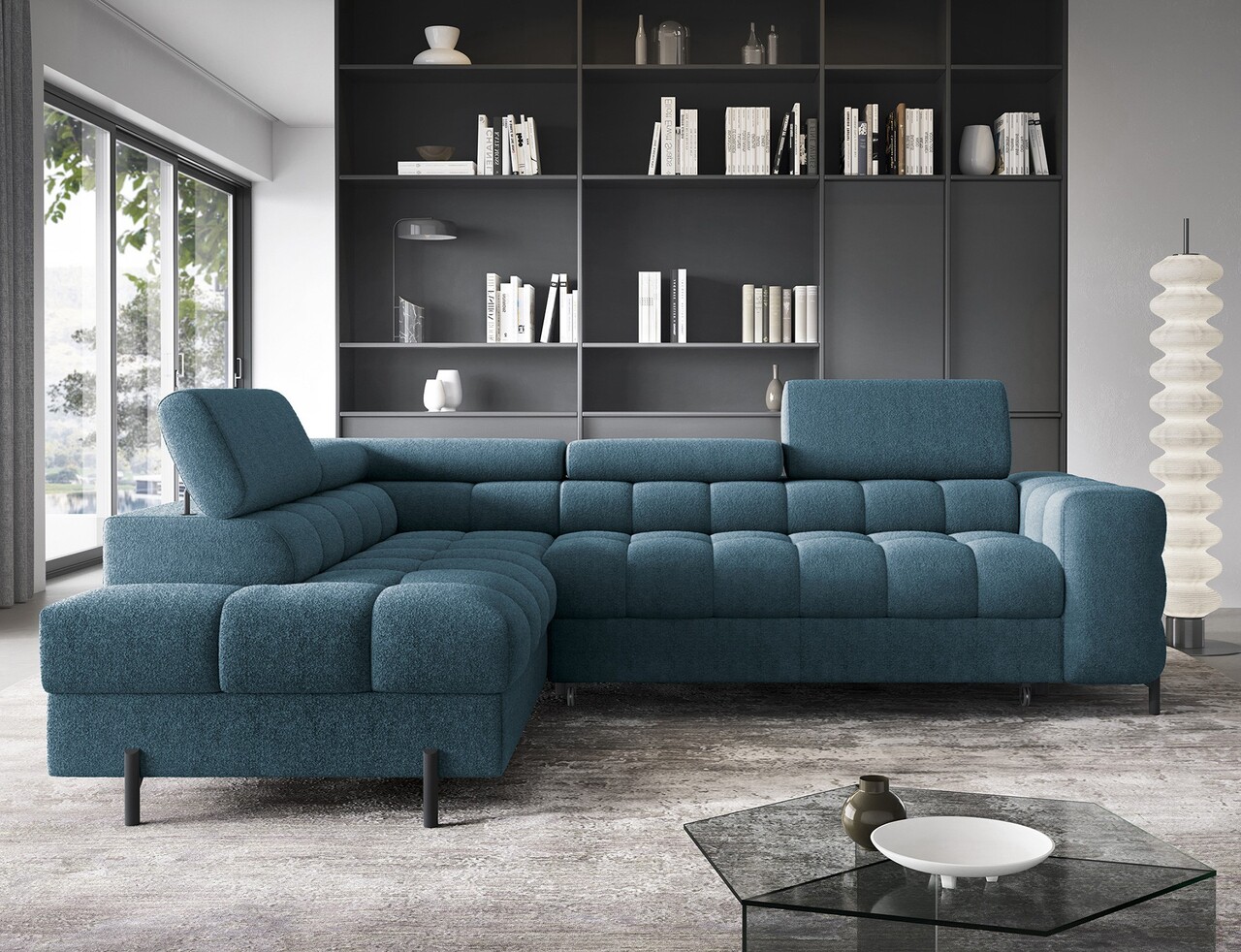 Coltar extensibil stanga 5 locuri ELTAP, LT-40AMO, Ferucce, 276x200x93 cm, lemn/poliester, albastru