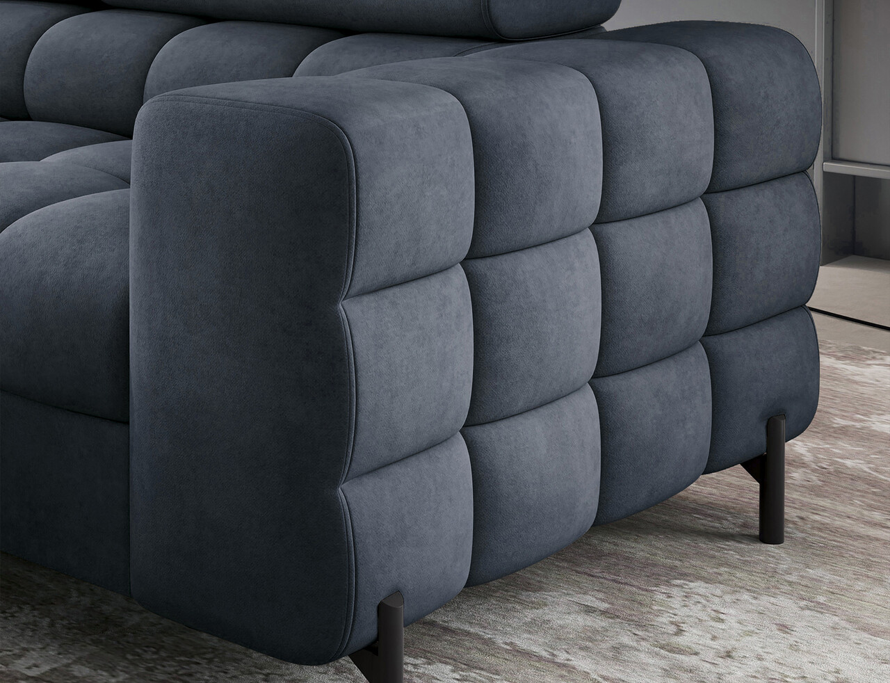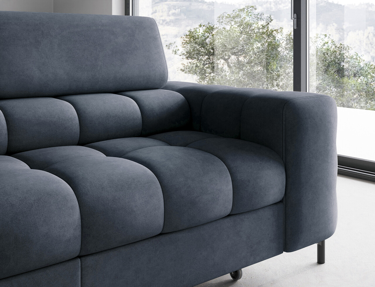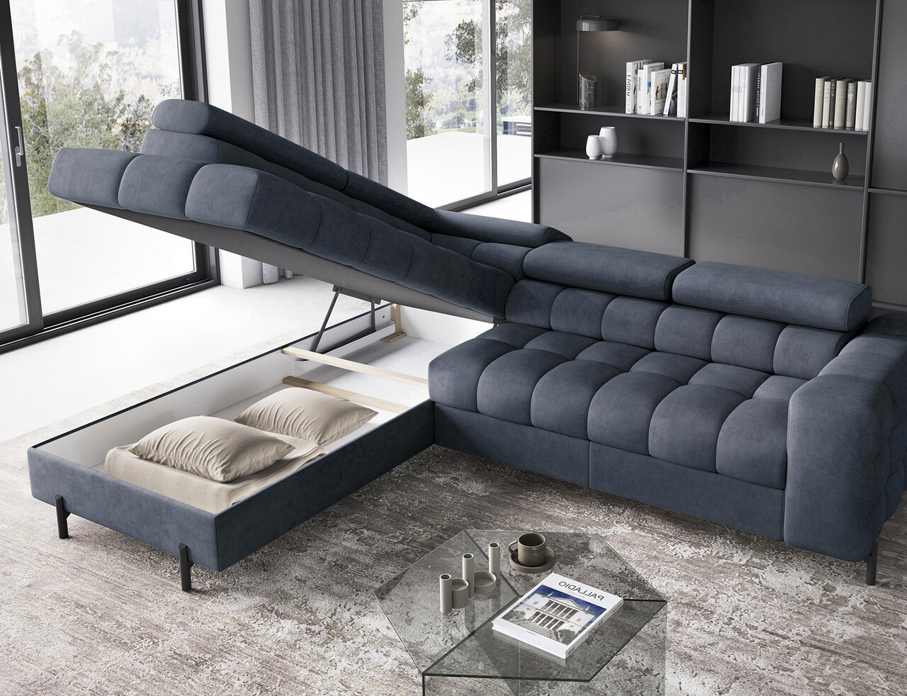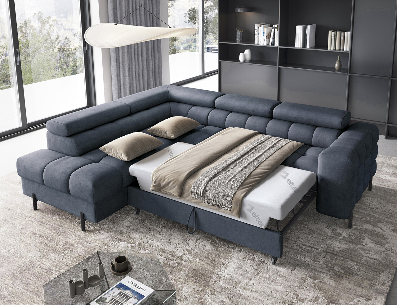 Coltar extensibil stanga 5 locuri ELTAP, LT-40AU, Ferucce, 276x200x93 cm, lemn/poliester, albastru inchis