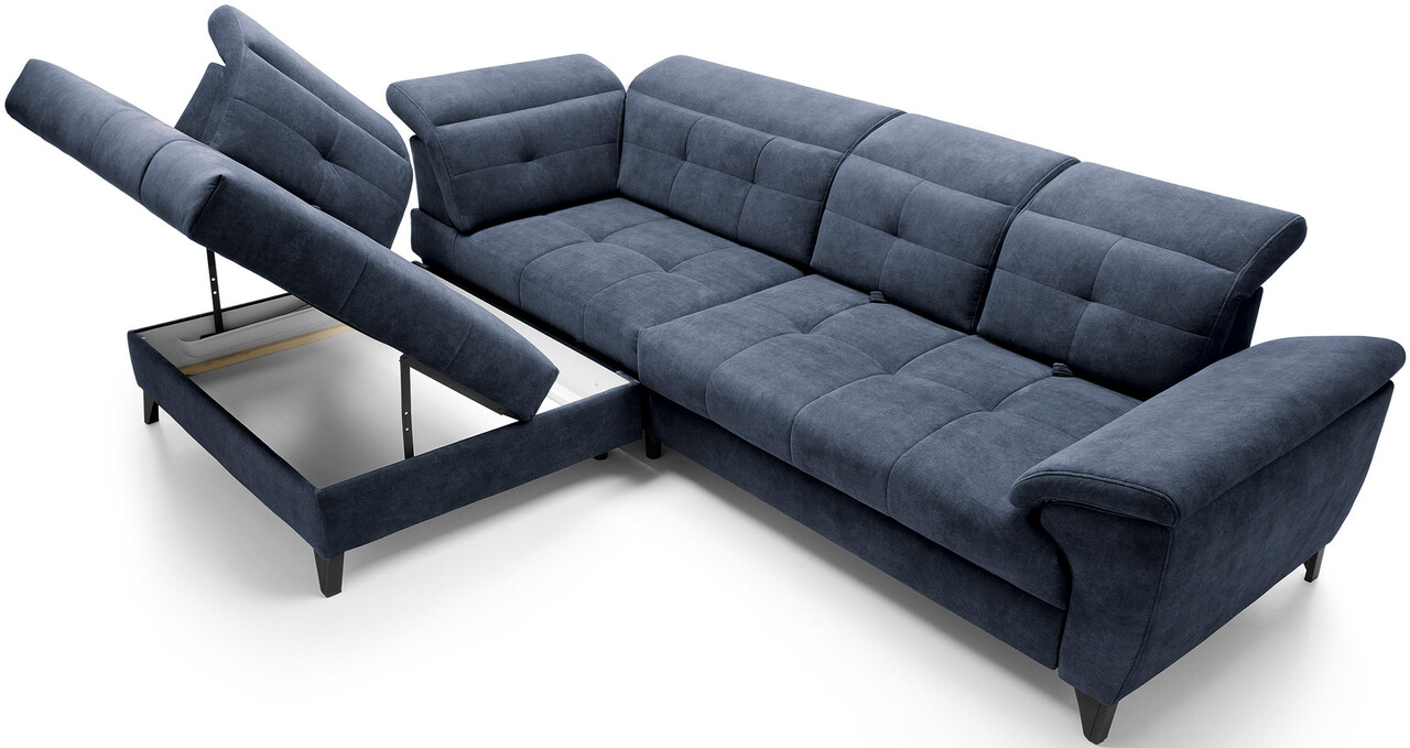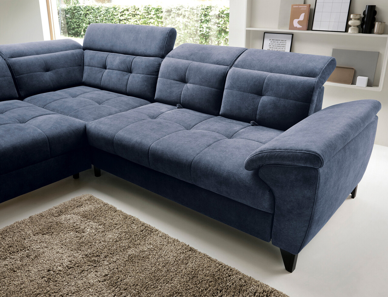 Coltarul Inferne este o piesa sofisticata de mobilier pentru living care imbina designul modern cu cea mai inalta calitate a componentelor, asigurand un confort de neuitat in utilizare. Echipat cu arcuri ondulate tip B si un sezut umplut cu spuma HR + T2130 foarte elastica, acest coltar ofera moliciune, flexibilitate si o potrivire perfecta cu forma anatomica a corpului, ceea ce se traduce printr-o relaxare profunda si detensionare musculara. Datorita utilizarii curelelor elastice de tapiterie si a spumei T2130 in spatar, coltarul Inferne se caracterizeaza prin durabilitate si rezistenta la deformare. Isi pastreaza aspectul original pentru multi ani, eliminand problema cutelor si pierderea formei. Mecanismul de extindere tip delfin, usor de manevrat, va permite sa transformi rapid coltarul intr-un pat confortabil, perfect atat pentru tine, cat si pentru oaspetii tai. In plus, coltarul Inferne este prevazut cu o lada de depozitare spatioasa pentru asternuturi, ascuns discret in interior. Este o solutie perfecta care ofera spatiu practic de depozitare pentru toate textilele dumneavoastra. Picioarele metalice negre adauga o nota moderna coltarului, subliniind eleganta acestei piese de mobilier. Finisarea atenta face din coltarul Inferne nu numai un element al unui interior confortabil, ci si un accent elegant in amenajarea camerei de zi. Coltaril Inferne este o armonie de lux, confort si functionalitate, creand un loc in camera de zi nu numai pentru a va relaxa, ci si pentru a va intalni cu familia si prietenii.