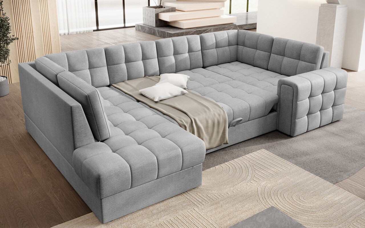 Coltar extensibil stanga 5 locuri ELTAP, LT-85MO, Blewett, 299x198x82 cm, lemn/poliester, gri deschis