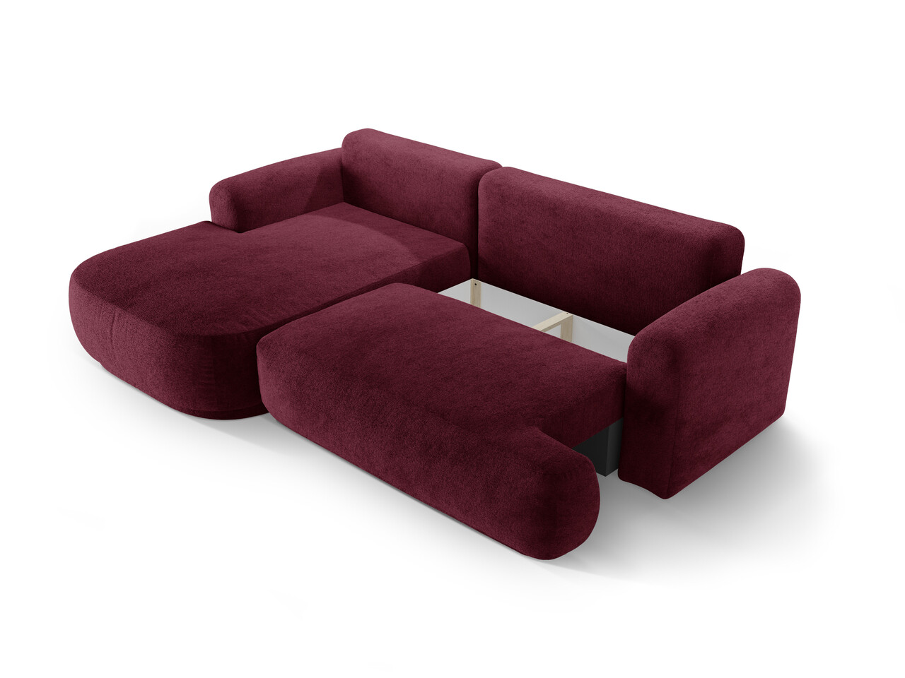 Coltar extensibil stanga 5 locuri, modular, cu lada depozitare, Ella, Micadoni Home, 271x174x94 cm, tesatura structurata chenille, bordo