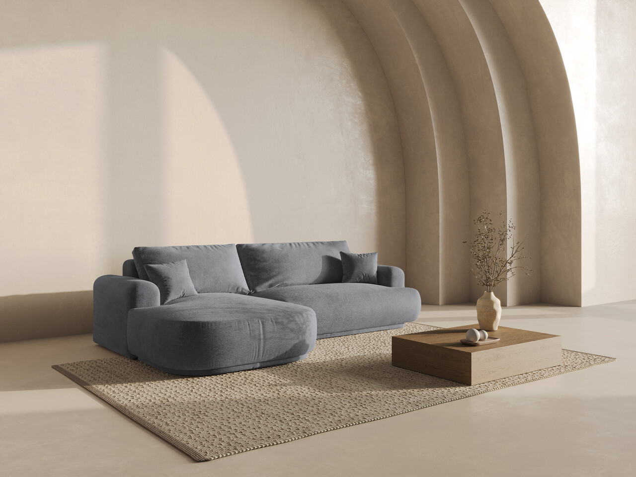 Coltar extensibil stanga 5 locuri, modular, cu lada depozitare, Ella, Micadoni Home, 271x174x94 cm, tesatura structurata chenille, gri