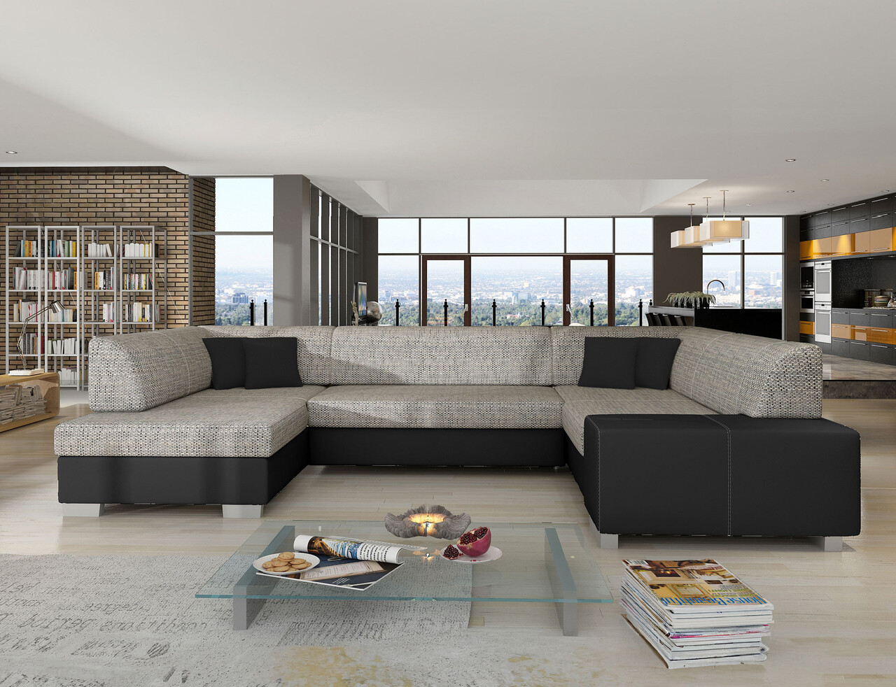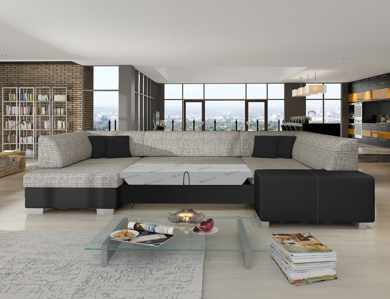 Coltar extensibil stanga 6 locuri ELTAP, Hv12, Havana, 322x204x72 cm, lemn/poliester, gri deschis/negru