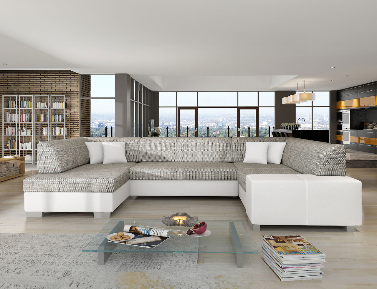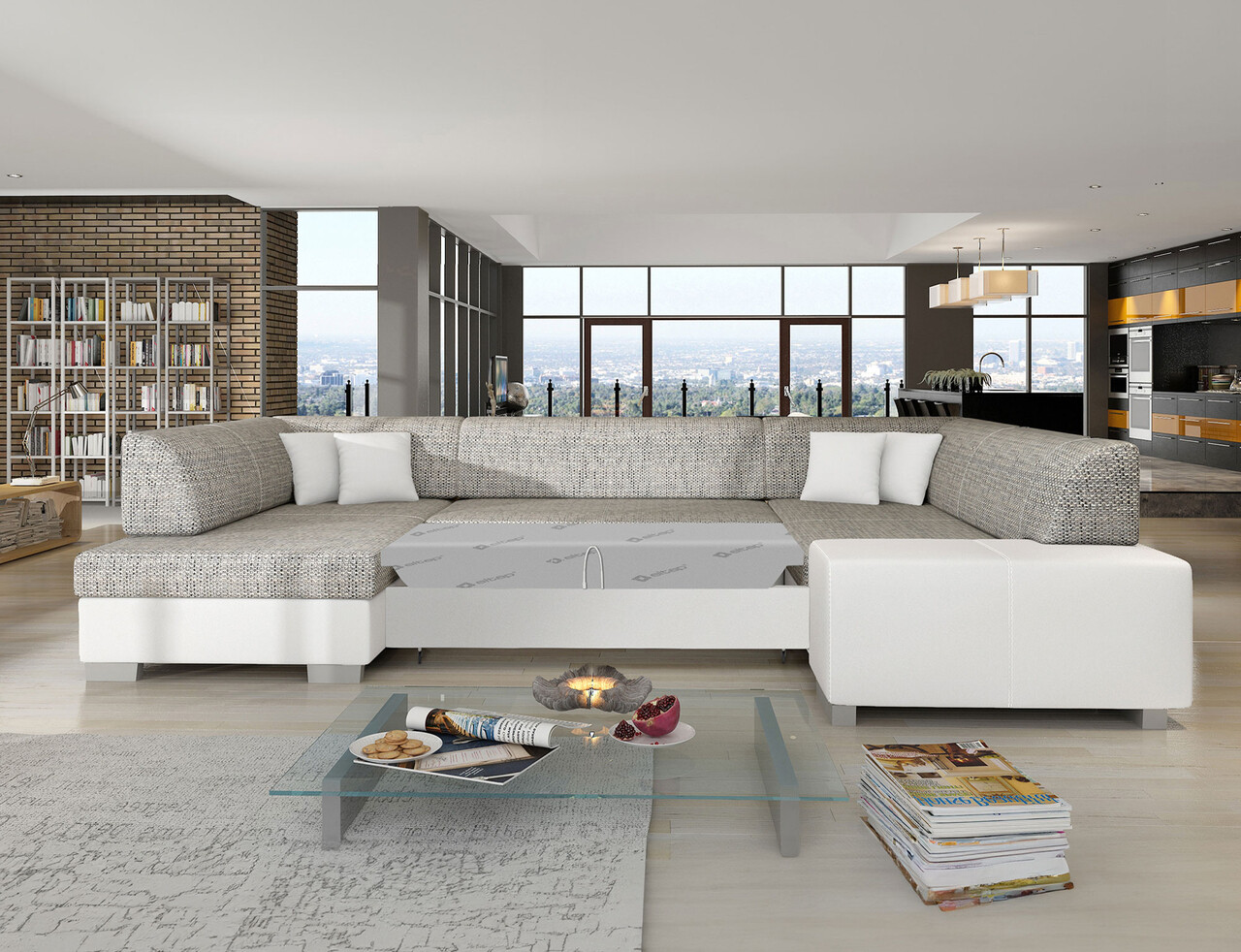 Coltar extensibil stanga 6 locuri ELTAP, Hv13, Havana, 322x204x72 cm, lemn/poliester, gri/alb