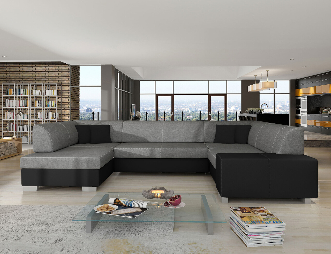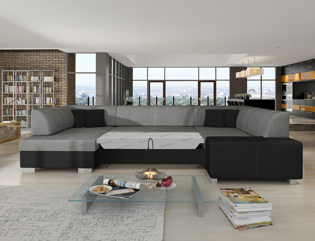 Coltar extensibil stanga 6 locuri ELTAP, Hv18, Havana, 322x204x72 cm, lemn/poliester, gri inchis/negru