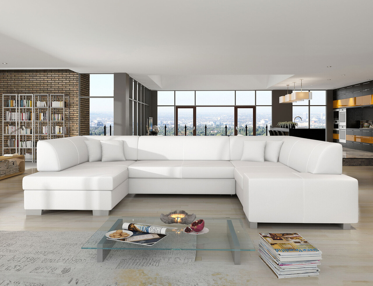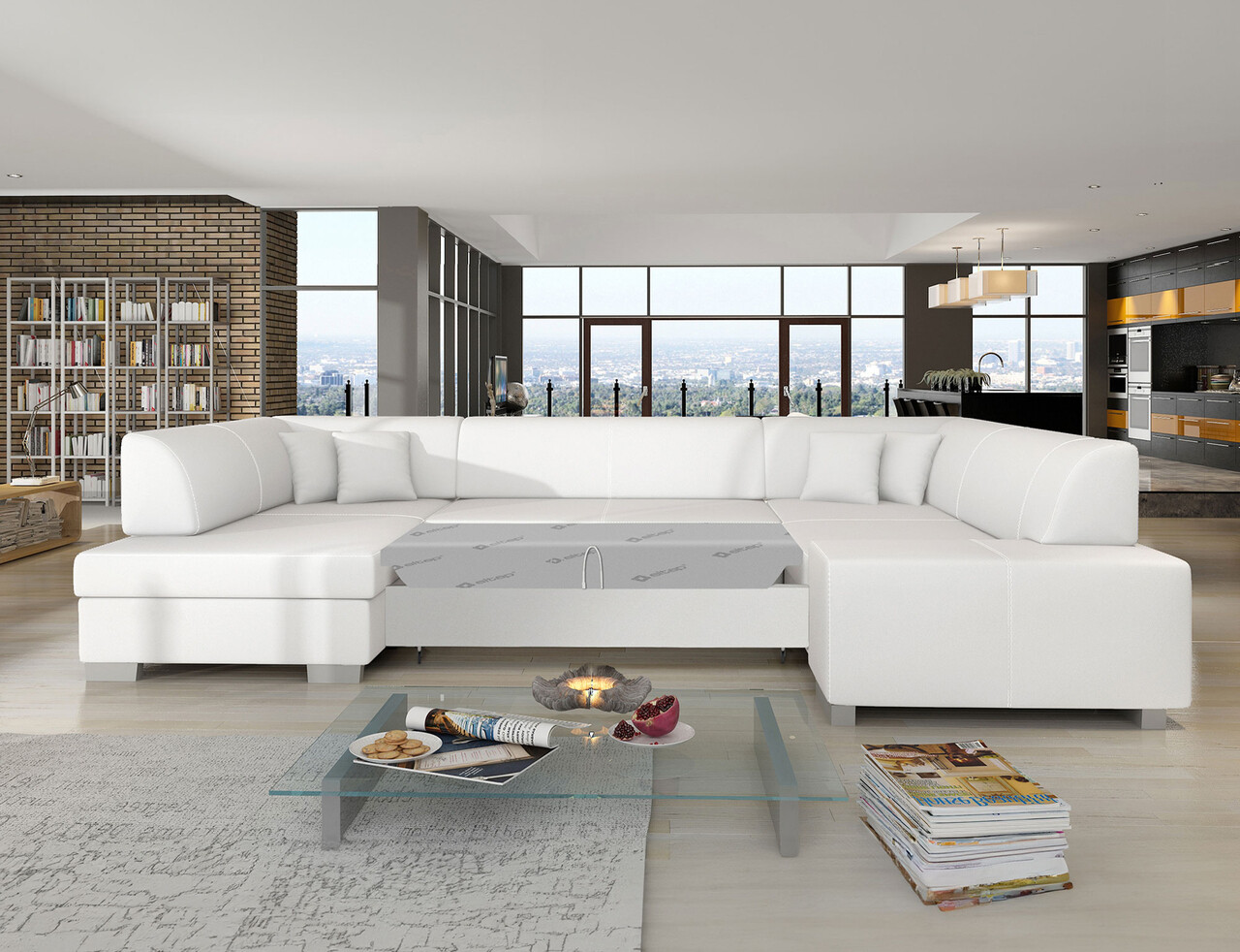 Coltar extensibil stanga 6 locuri ELTAP, Hv20, Havana, 322x204x72 cm, lemn/poliester, alb