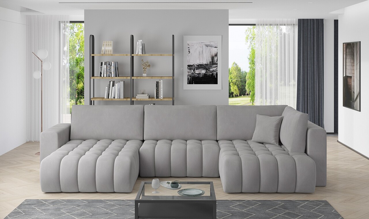Coltar extensibil stanga 6 locuri ELTAP, LT-03NU, Bonito, 350x175x92 cm, lemn/poliester, gri deschis