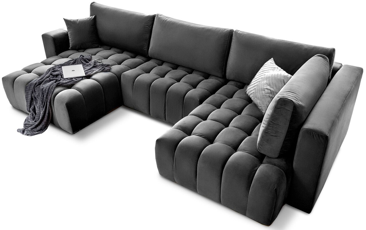 Coltar extensibil stanga 6 locuri ELTAP, LT-06NU, Bonito, 350x175x92 cm, lemn/poliester, gri inchis
