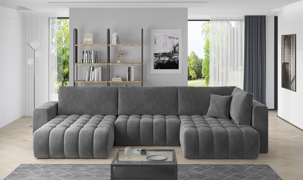 Coltar extensibil stanga 6 locuri ELTAP, LT-06SO, Bonito, 350x175x92 cm, lemn/poliester, gri inchis