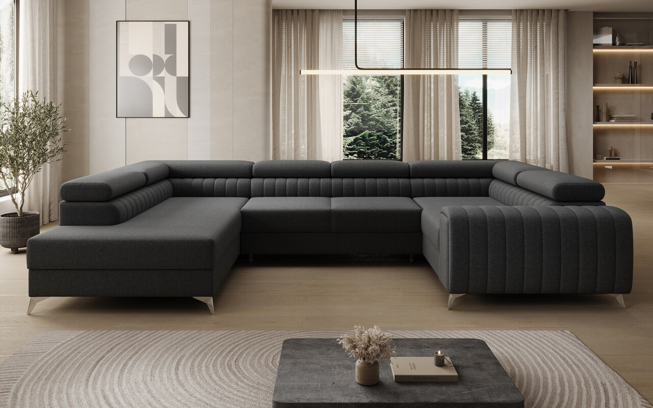 Coltar extensibil stanga 6 locuri ELTAP, LT-14SAW, Louis, 347x202x92 cm, lemn/poliester, negru
