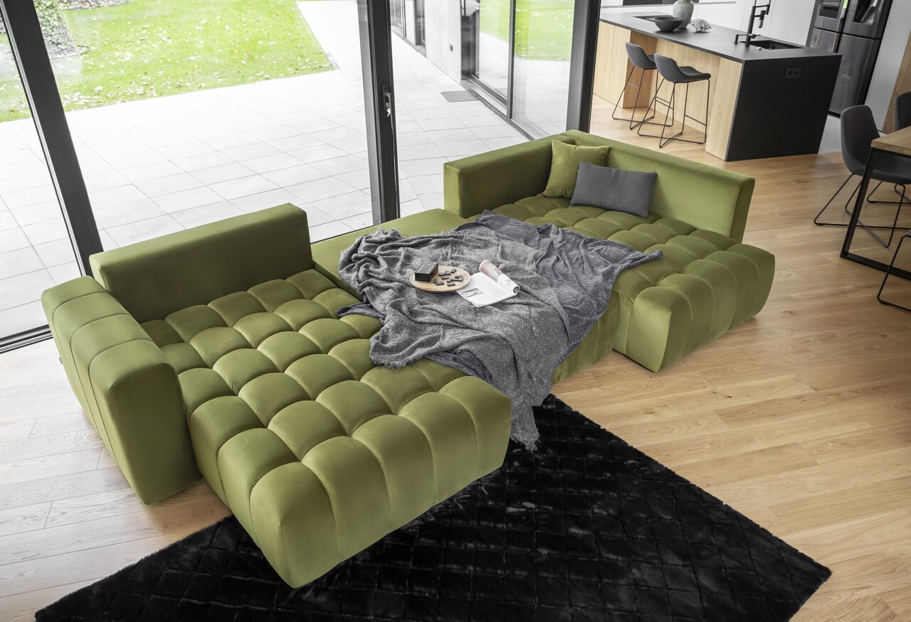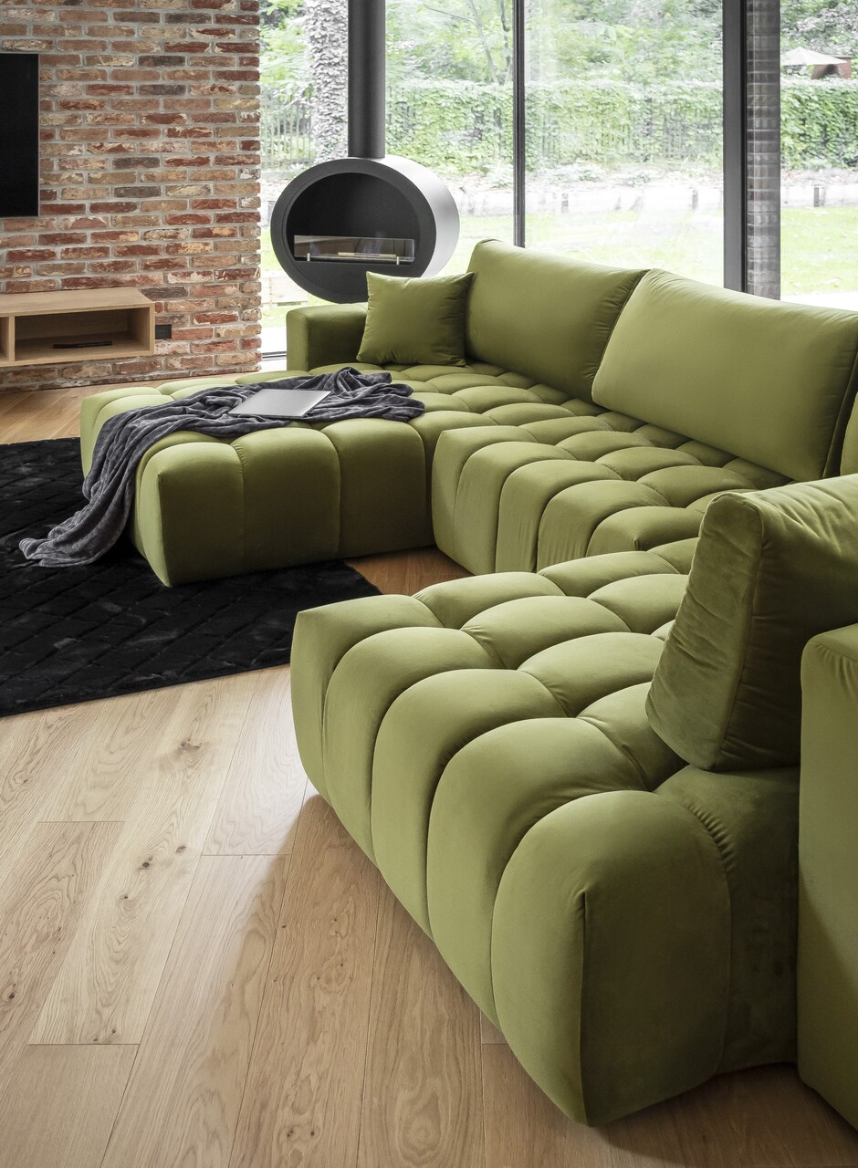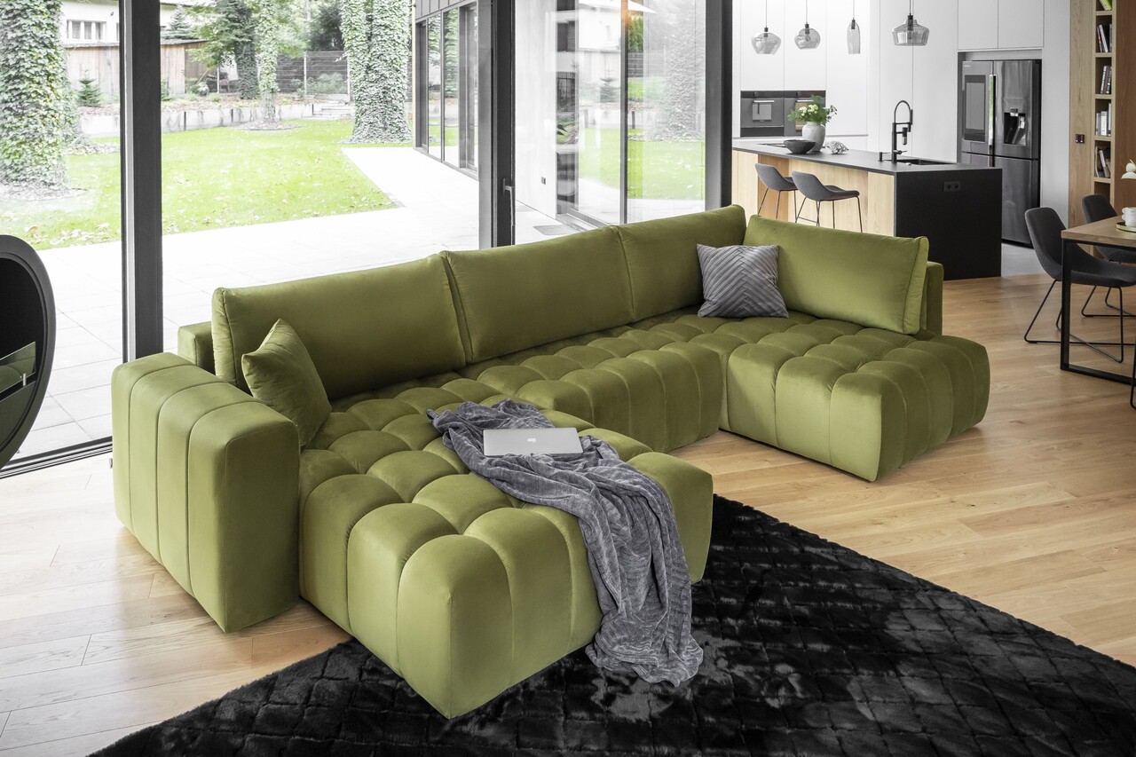 Coltar extensibil stanga 6 locuri ELTAP, LT-33LO, Bonito, 350x175x92 cm, lemn/poliester, verde olive