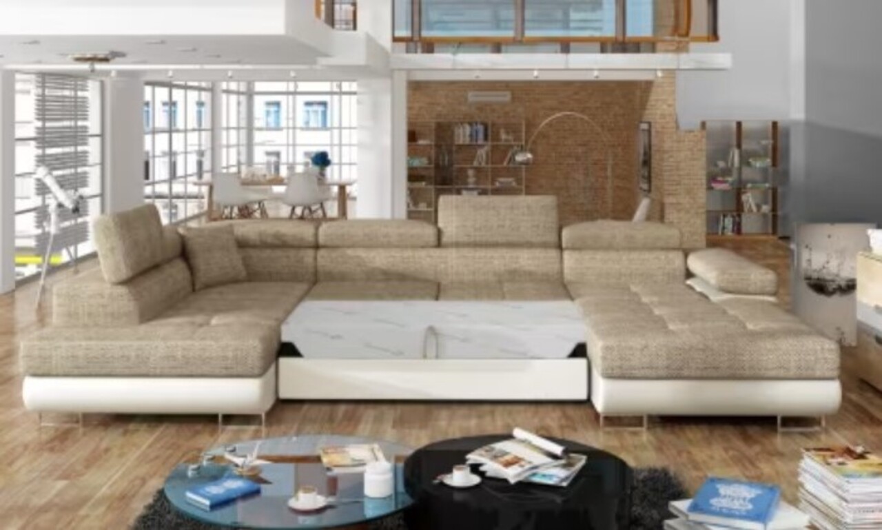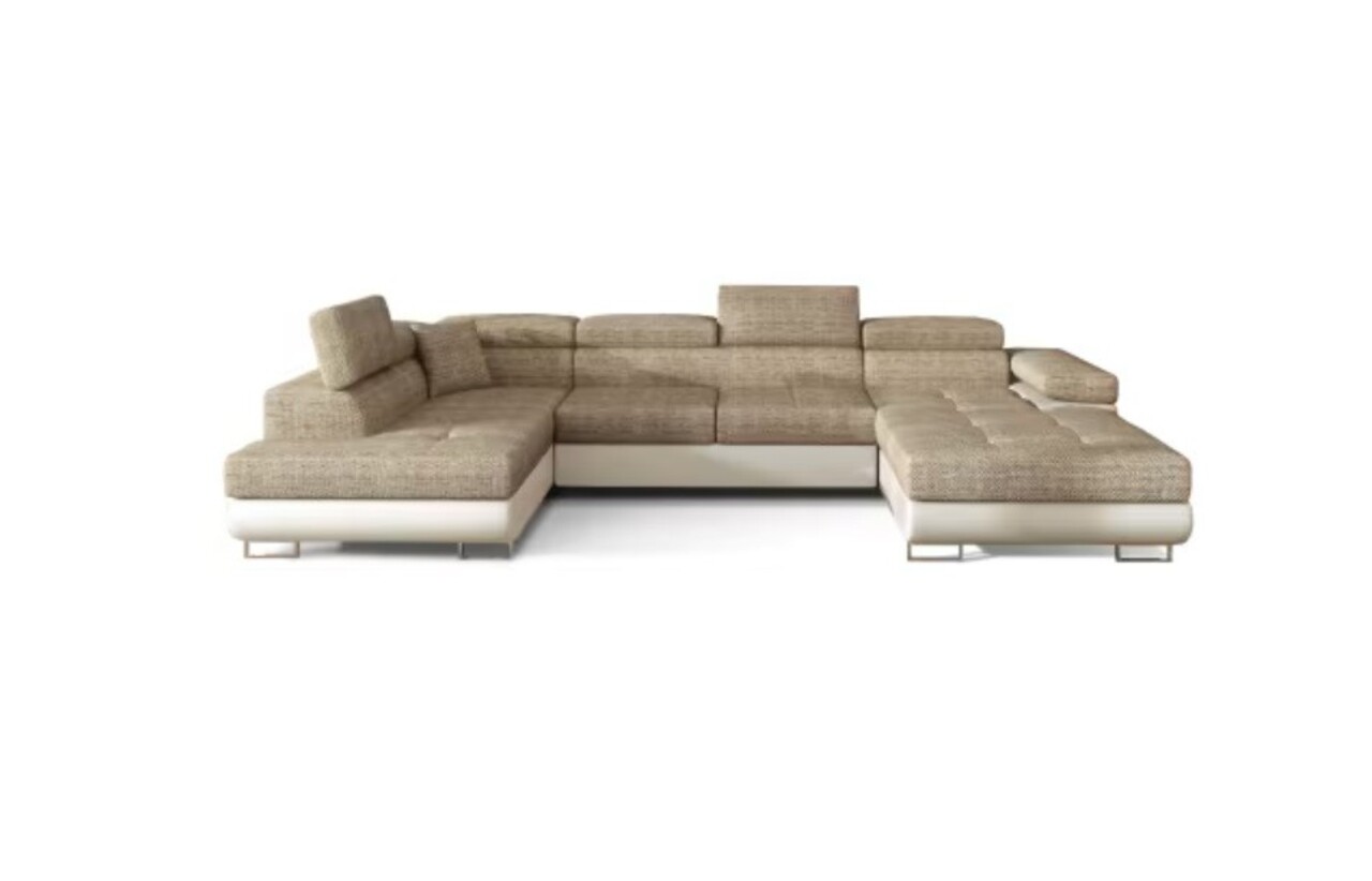 Coltar extensibil stanga 6 locuri ELTAP, Rod-15, Rodrigo, 345x202x90 cm, lemn/poliester, bej inchis/bej deschis