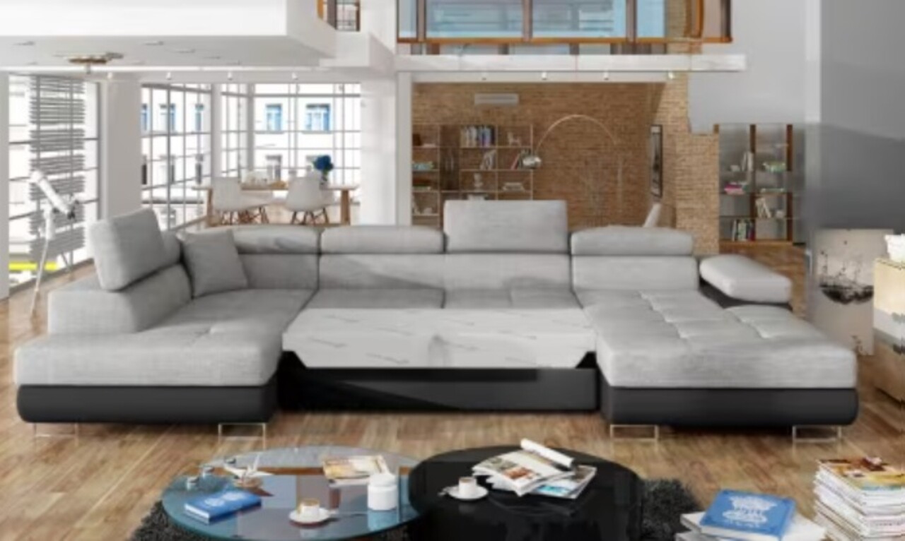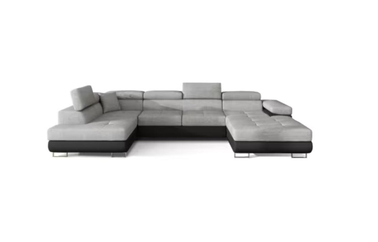 Coltar extensibil stanga 6 locuri ELTAP, Rod-20, Rodrigo, 345x202x90 cm, lemn/poliester, gri deschis/negru