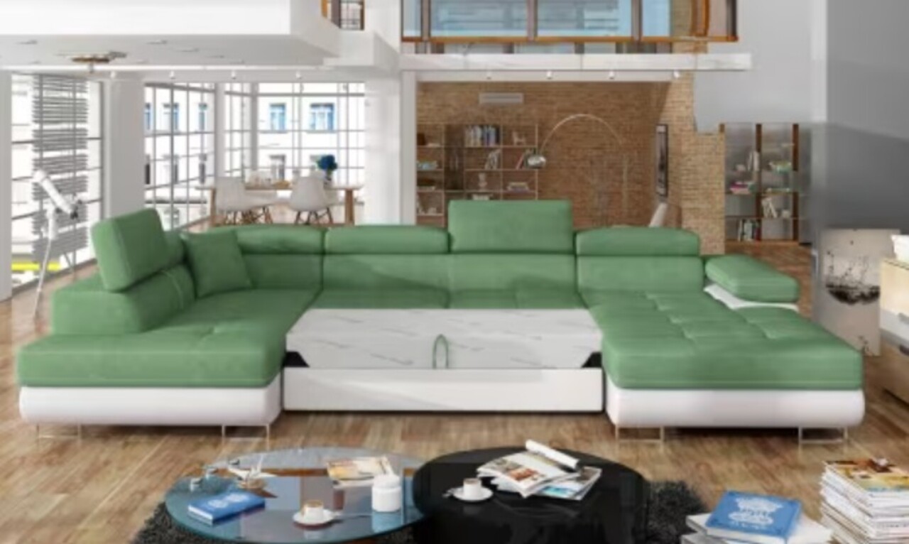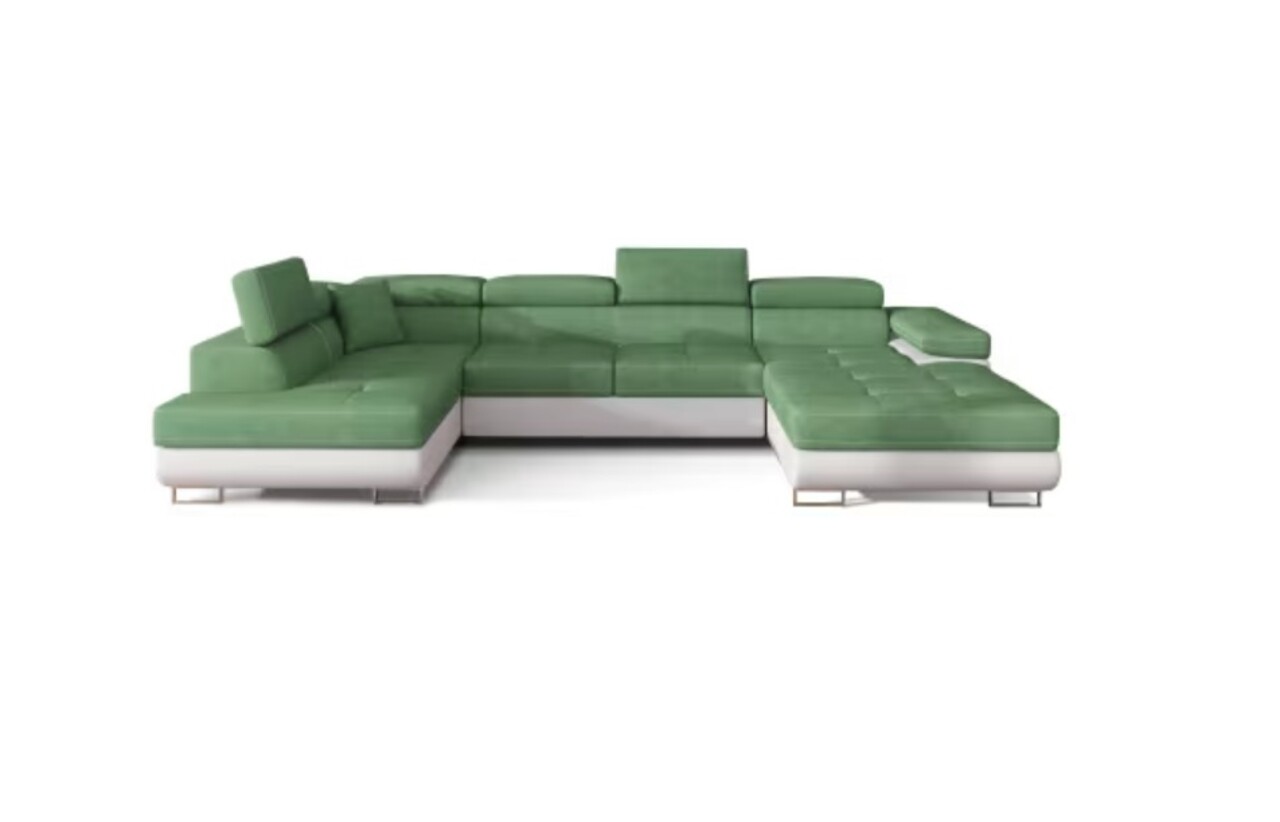 Coltar extensibil stanga 6 locuri ELTAP, Rod-22, Rodrigo, 345x202x90 cm, lemn/poliester, verde deschis/alb