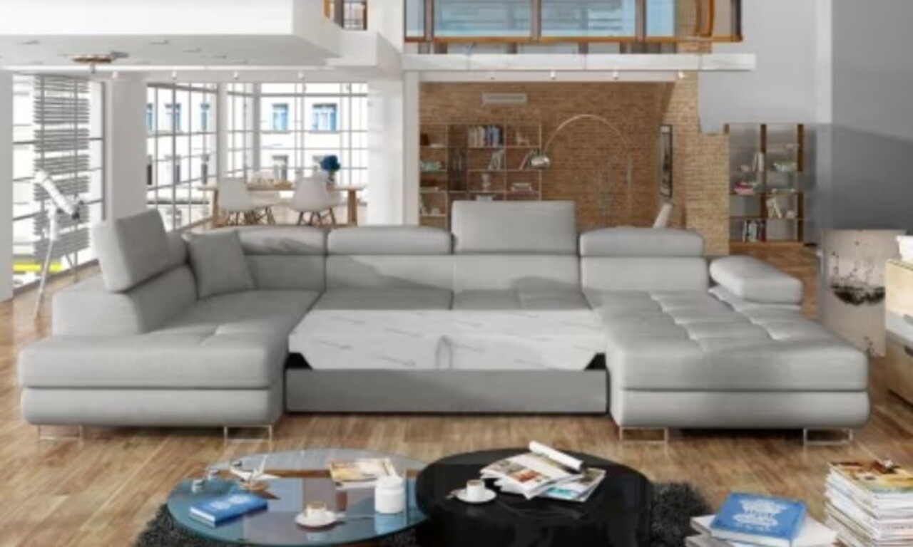 Coltar extensibil stanga 6 locuri ELTAP, Rod-33, Rodrigo, 345x202x90 cm, lemn/poliester, gri deschis