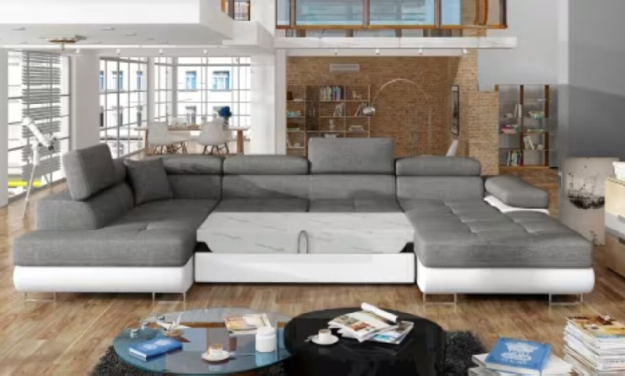 Coltar extensibil stanga 6 locuri ELTAP, Rod-36, Rodrigo, 345x202x90 cm, lemn/poliester, gri inchis/alb