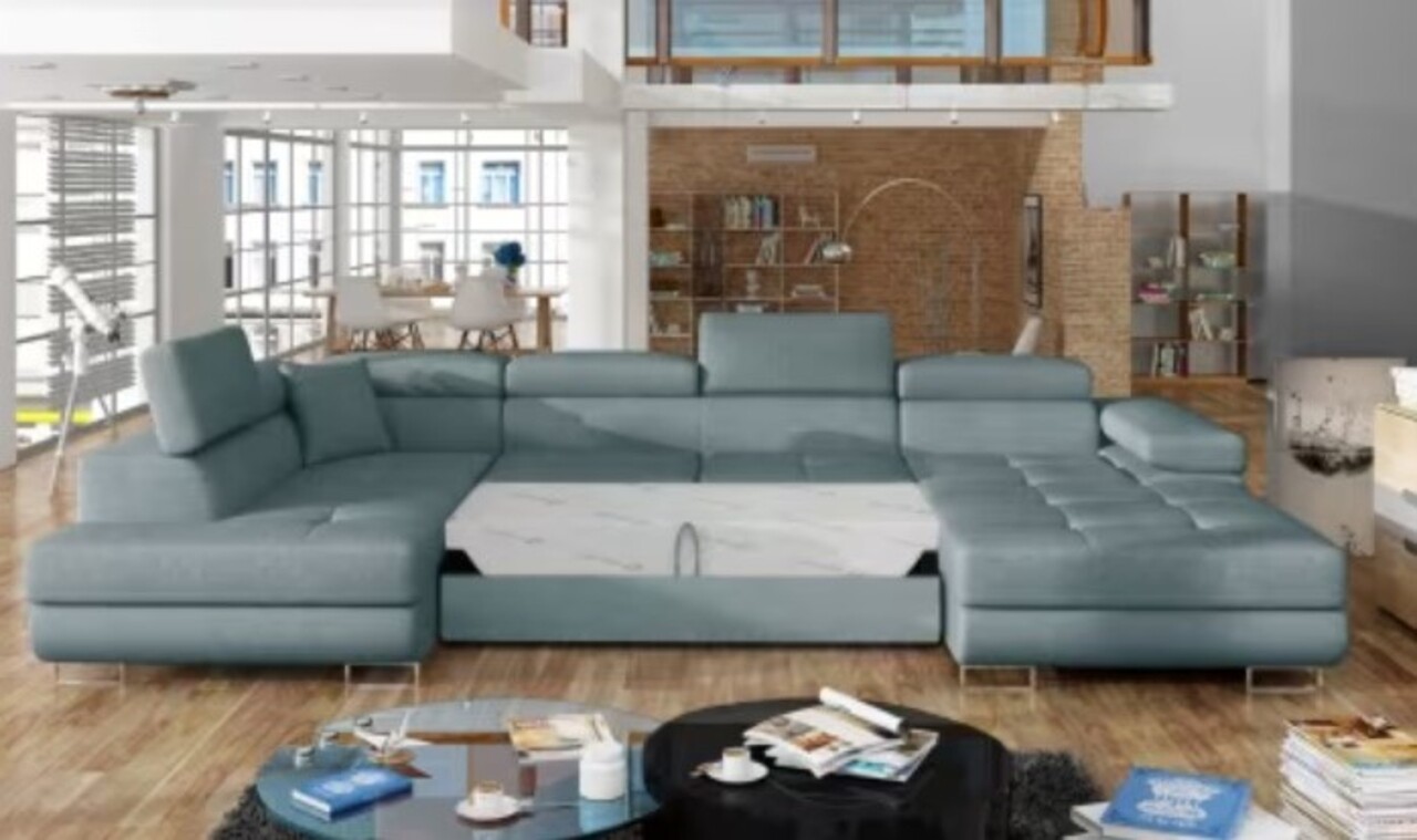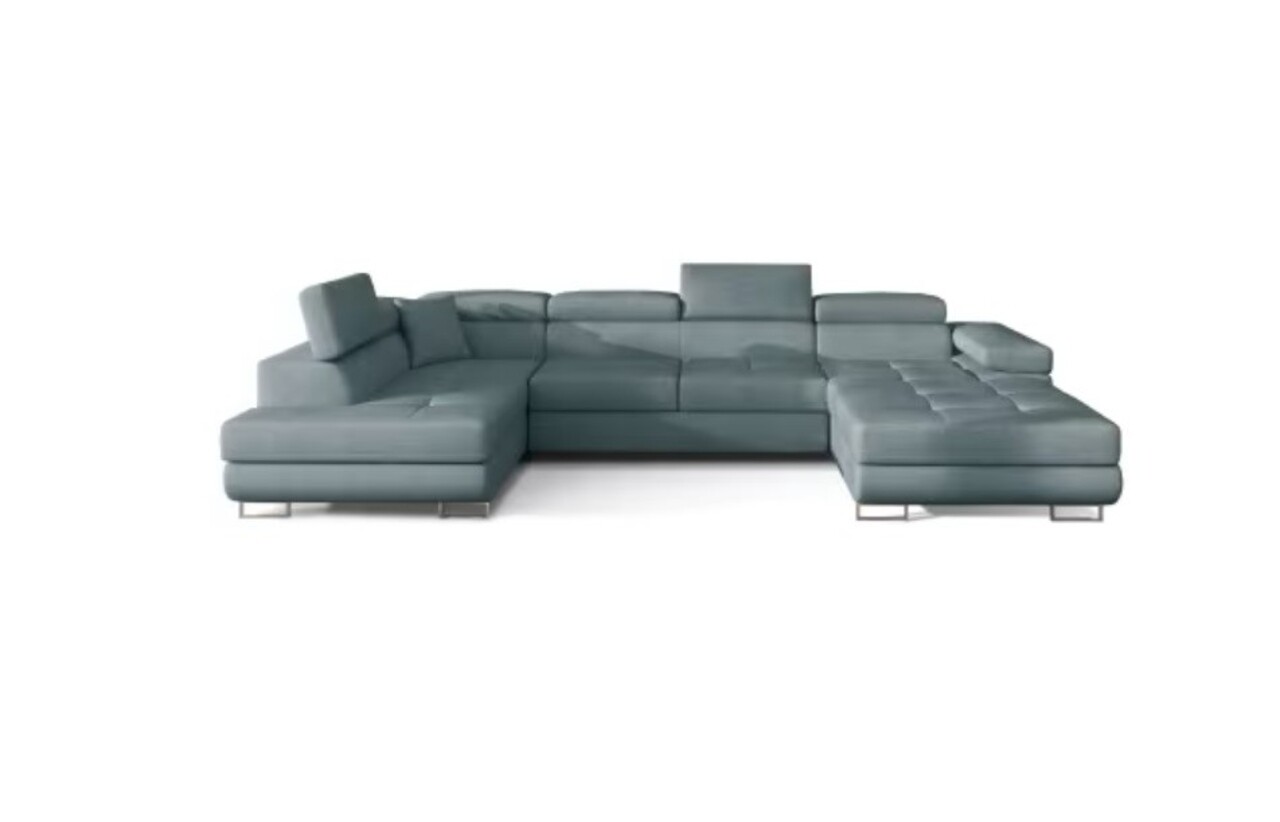 Coltar extensibil stanga 6 locuri ELTAP, Rod-48, Rodrigo, 345x202x90 cm, lemn/poliester, albastru deschis