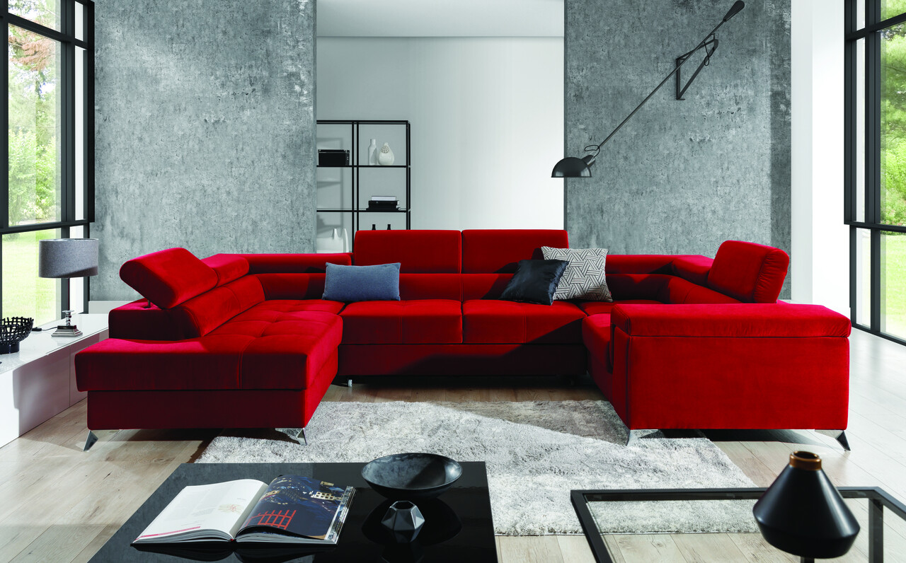 Coltar extensibil stanga 6 locuri ELTAP, Th-46, Thiago, 342x208x88 cm, lemn/poliester, rosu