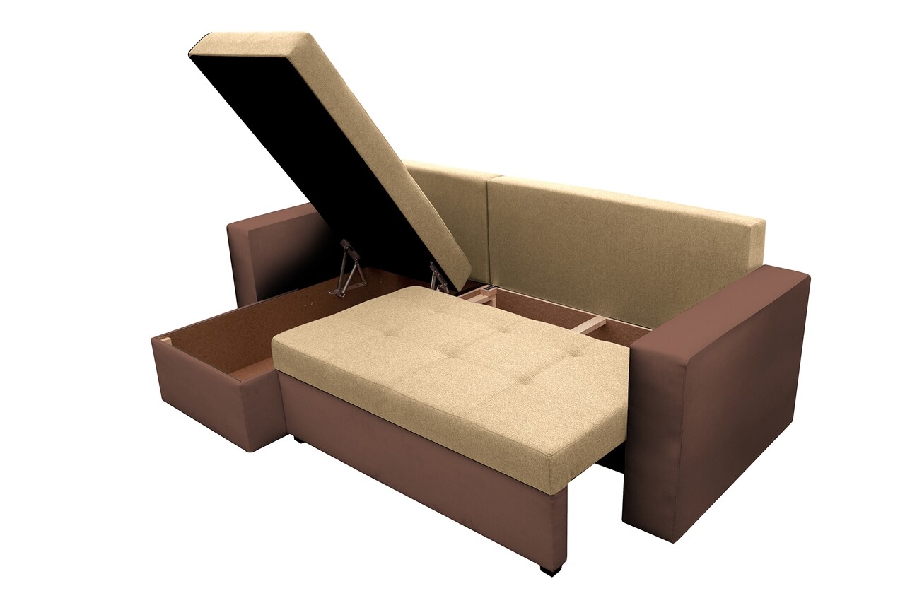 Coltar extensibil Toledo, 226x145x79 cm, 2 lazi depozitare, Reversibil, Maro/Crem