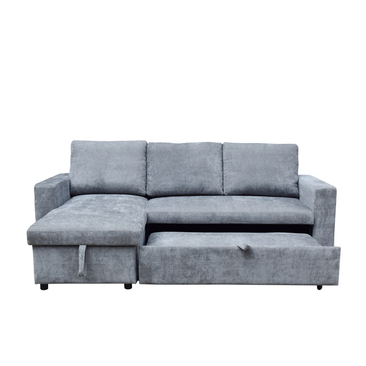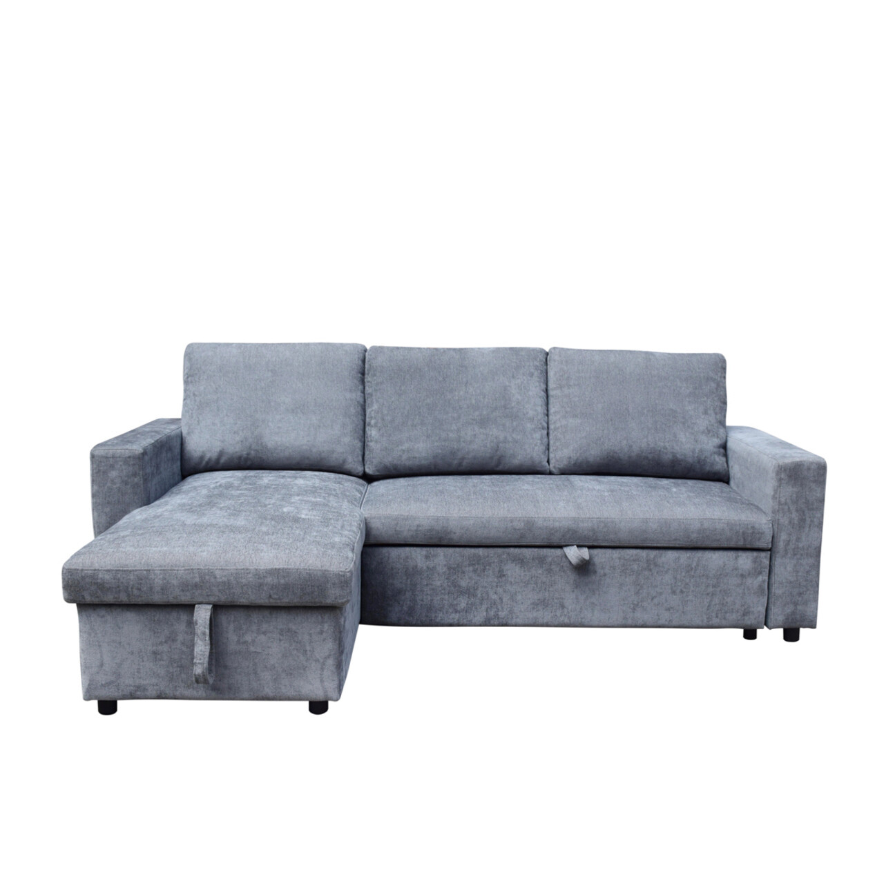 Coltar extensibil Virev, Homla, 3 locuri, 215x76x85 cm, lemn/catifea din poliester, gri