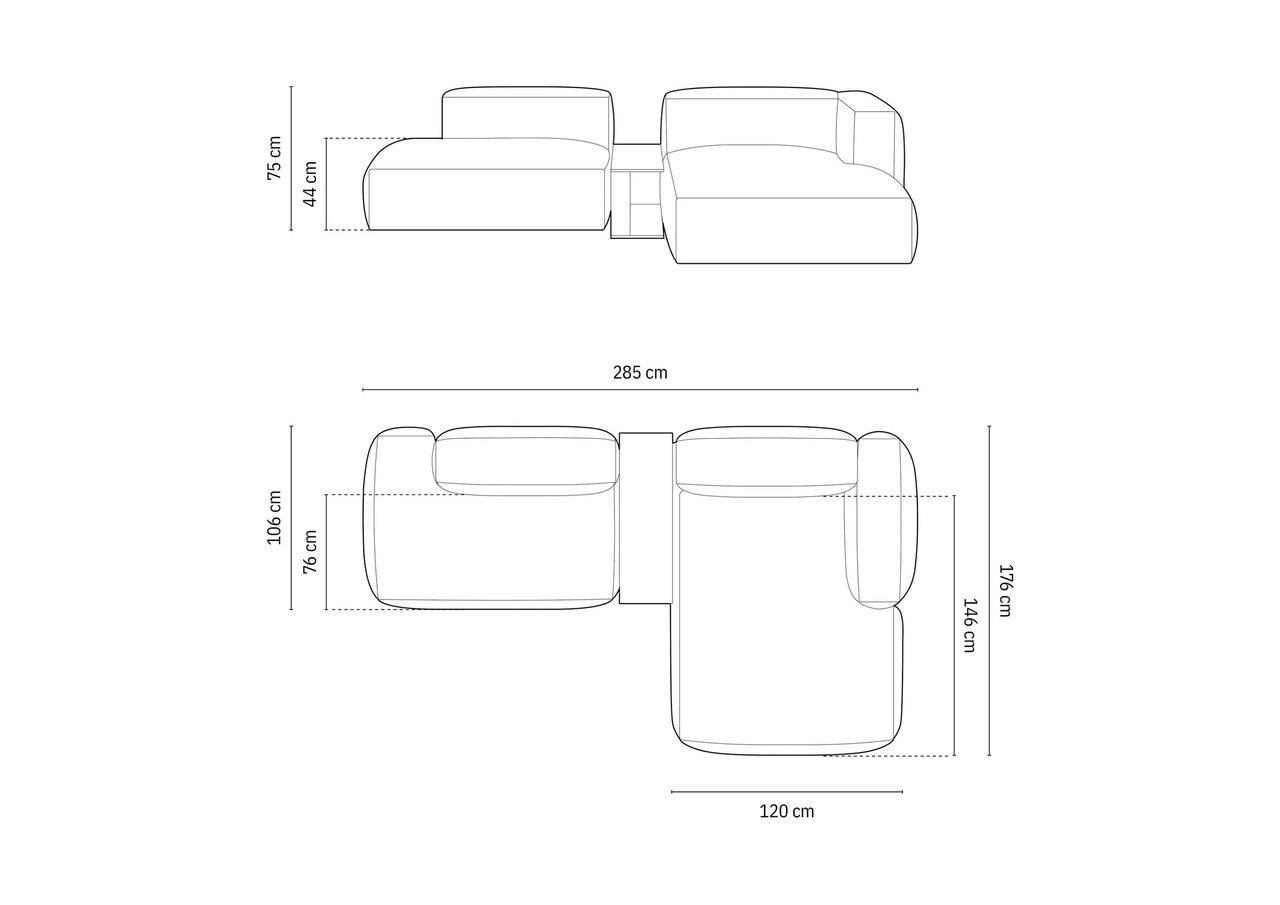 Coltar modular dreapta 2 locuri, Martina-120, Micadoni Home, 285x176x75 cm, catifea, gri
