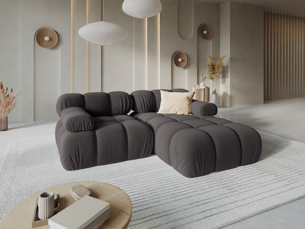 Coltar modular dreapta 3 locuri, Bellis, Micadoni Home, BL, 188x155x70 cm, catifea, gri inchis