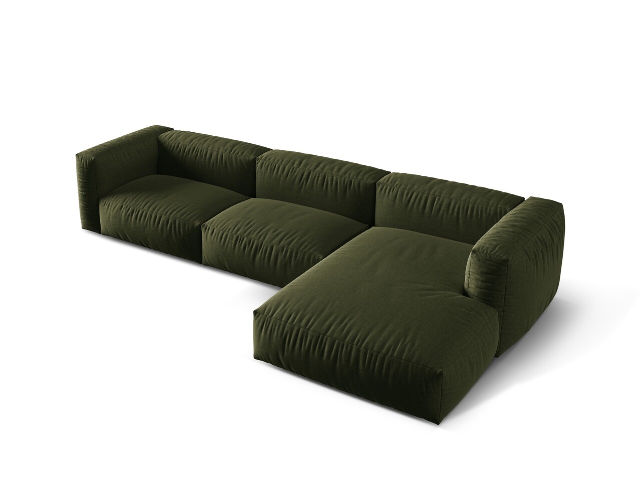 Coltar modular dreapta 3 locuri, Martina-169, Micadoni Home, 332x176x75 cm, tesatura structurata catifelata, verde